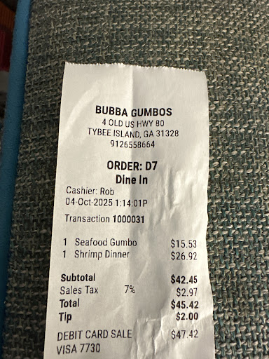My family and I were excited to eat at Bubba Gumbo’s after reading the (mostly) great reviews. We were in town for our son’s baseball tournament in Savannah and wanted some good seafood. When we arrived at around 6:00, we were told to sit where we wanted, so our party of 7 decided to split between two picnic tables (4 adults and 3 teenaged boys). When the hostess came over, she asked us if we wanted to squeeze into one table, three on each side and one on the end because we were in two separate sections. We told her we would rather stay where we were because cramming together into one table would be uncomfortable and we didn’t want someone stuck on the end in the way of people walking by (plus, it is June and we were sitting outside). She did not seem happy about accommodating this request and walked off.