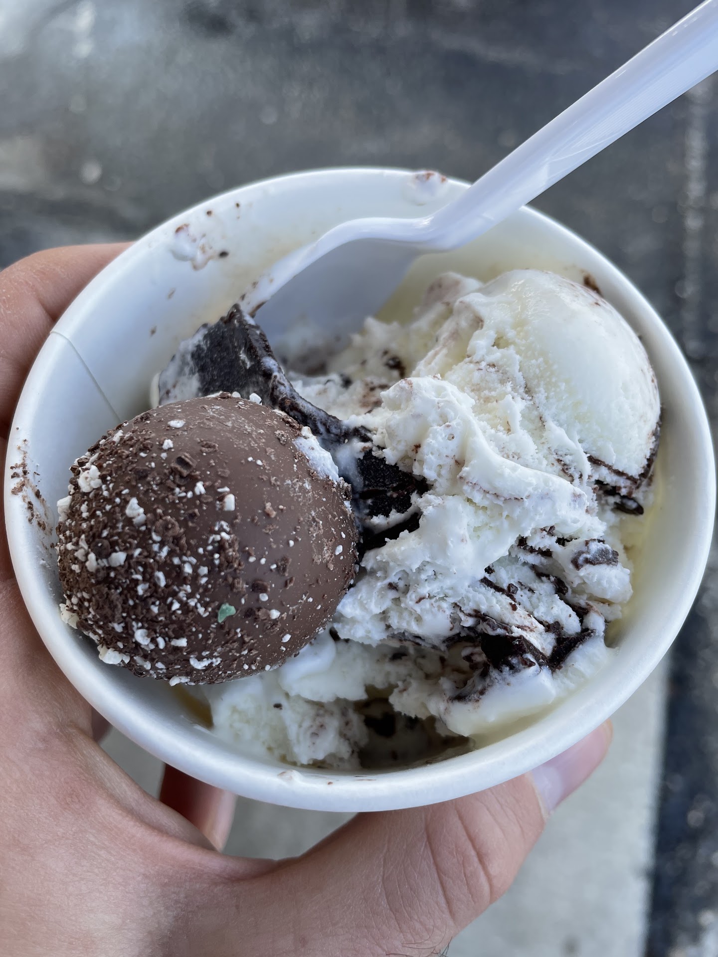 Read moreFirst time customer ordered one scoop of cookie dough ice cream. The man behind counter then proceeds to attempt to sculpt a behemoth sized monstrosity onto a single sugar cone. At first he started out with a decent amount for 1 scoop, then readdress the situation and asked me, âYou said only one scoop correct?â I said yes and then thatâs when instead of scooping out the ice cream he proceeded to shovel an ungodly amount of ice cream onto the cone. At one point the gentlemen inspected the absolute unit of a scoop he just created in attempt to see where he would be able to fit more ice cream. The masterpiece was so funny the entire 8 person staff and remaining of restaurant burst into laughter. Definitely will return....