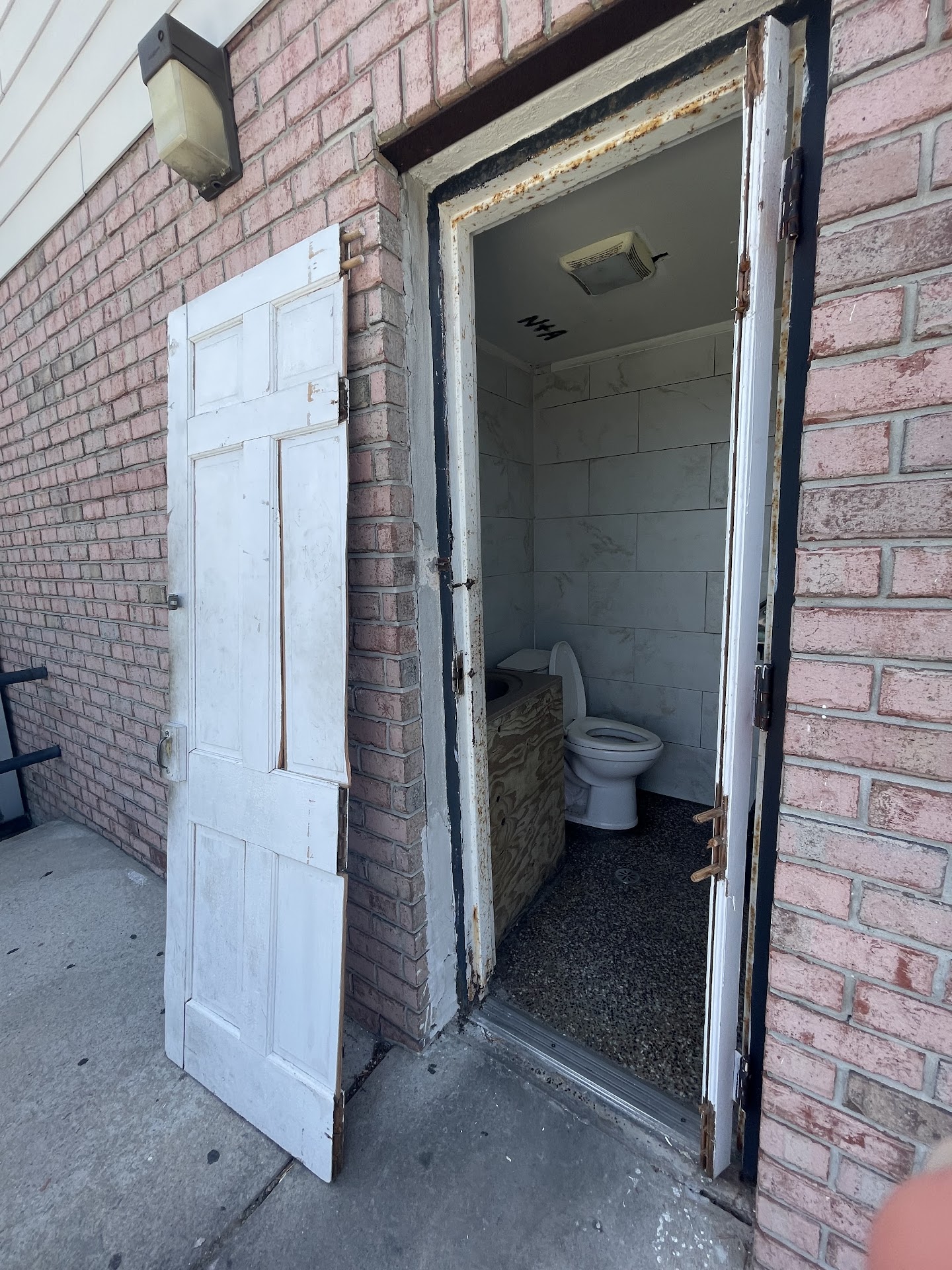 Food was great but service and kindness of employees was not. Four of us at here for a late lunch yesterday and we each left over a thirty percent tip even though we had to ask to have our teas refilled and the waitress wasn’t very friendly. But the reason why I will NEVER patronize this establishment again is because we came back in about twenty minutes after we left because my Mom ( who is a pancreatic cancer survivor and has permanent issues with not being able to hold or control her bowels for me than a few minutes after she needs to go) and I went back in for her to use their bathroom. They were tying to clean the bathrooms to close, we asked if we could please just let my Mom use the restroom. They said no they were cleaning them. So I explained what the issue was and they said, “No we are mopping and that’s a liability”. I said my Mom was going to mess herself if she couldn’t get into the bathroom right away. They knew we had just eaten there because I told them. So they said we would have to go to the bathroom around the corner outside. We ran there and the door was off it’s hinges and I had to pick it up and hold it in front of the opening for my Mom to go to the bathroom. That restaurant had no compassion for someone who has fought to be alive and now has some stomach issues from the surgery they had to do to save her life and the women in there didn’t care at all. It was a very sad show of lack of compassion. It’s very embarrassing for my Mom and it was embarrassing for her for me to have to tell FIVE ladies that work there that were standing around talking. Very sad. This is the bathroom they sent my Mom to use. What they did was despicable and heartless. My Mom...