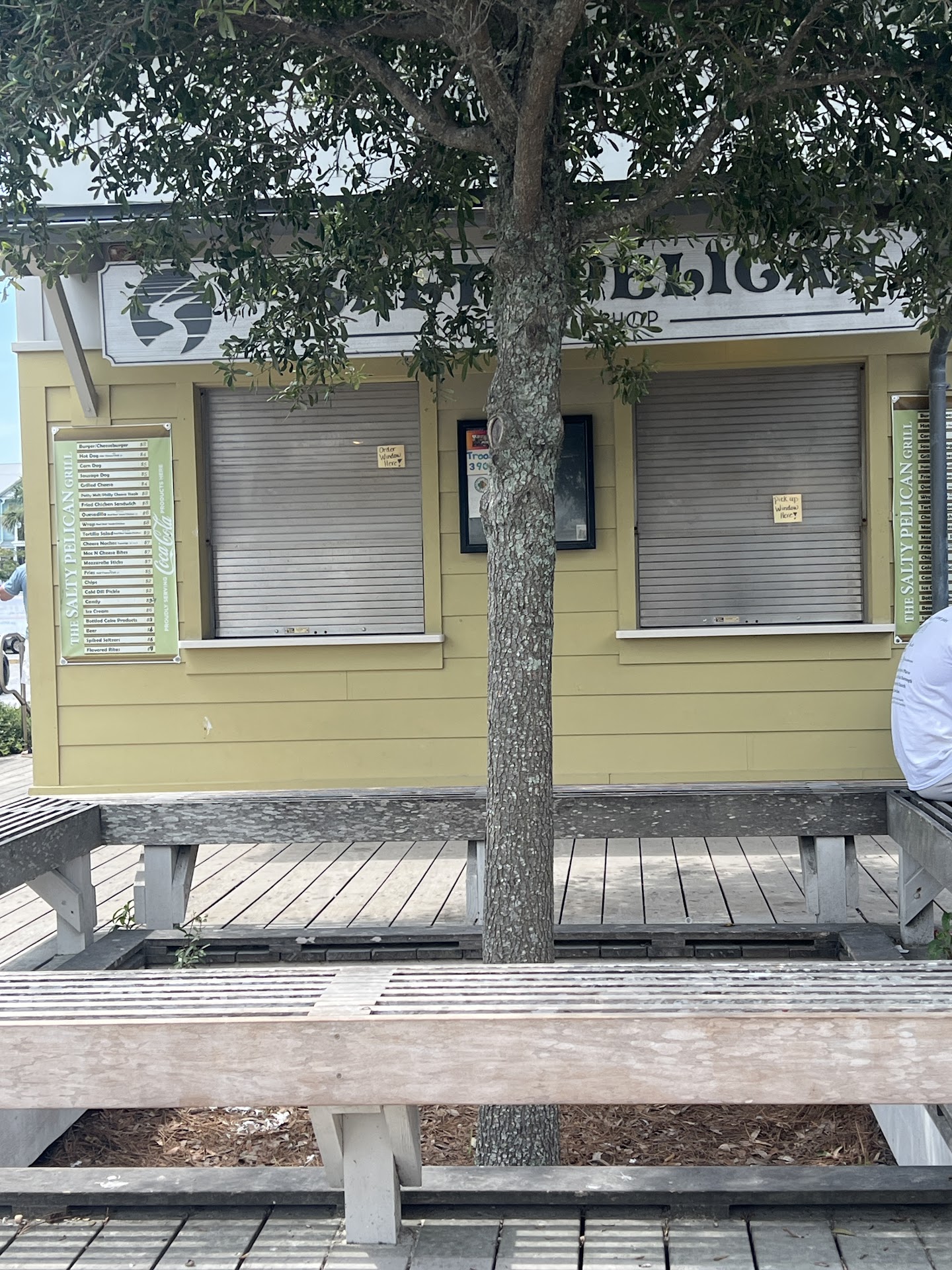This was a pleasant surprise....Located across the street from the Historic Tybee Lighthouse and on the grounds of Fort Screven...AT NORTH BEACH... THEE IS LOTS OF HANDICAPPED PARKING AND LOTS ON LIGHTHOUSE SIDE AS WELL AS THE OCEAN SIDE OF TH BUILDING....THERE ARE NICE CLEAN RESTROOMS, TRASH CAN SITES...THERE IS A HANDICAP RAMP ! THE SALTY PELICAN HAS A EXCELLENT SHORT ORDER MENU FOR YOUNG AND OLD !!! ORDER TO GO OR OUTSIDE SEATING..! DARRELL HAS A DAILY LUNCH SPECIAL FOR $9 TODAY , I HAD FRIED CHICKEN, CORN, AND FRIED OKRA....LET ME TELL YOU IT WAS MAMAS HOME COOKING GOOD. ! Yepyep. The price is right AND THE PORTIONS ARE HUGE....!!! THE PALM TREES AND THE OCEAN BREEZE TURNS THE PORCH INTO A AWESOME ISLAND ATMOSPHERE TO CHILL WHILE YOU ENJOY YOUR MEAL!!! THE BIRDS WERE HUNGRY AND SO FRIENDLY, THEY ATE OUT OF MY HAND...THAT WAS SOOOO AWESOME ! So if you are hungry and on Tybee...I HIGHLY RECOMMEND you eat with DARRELL at the SALTY PELICAN . You wont be sorry !!Its all there. !!! I am looking g forward to THURSDAY AND HIS POT ROAST SPECIAL WITH THE TRIMMMMMMMNGS... YUMMY...