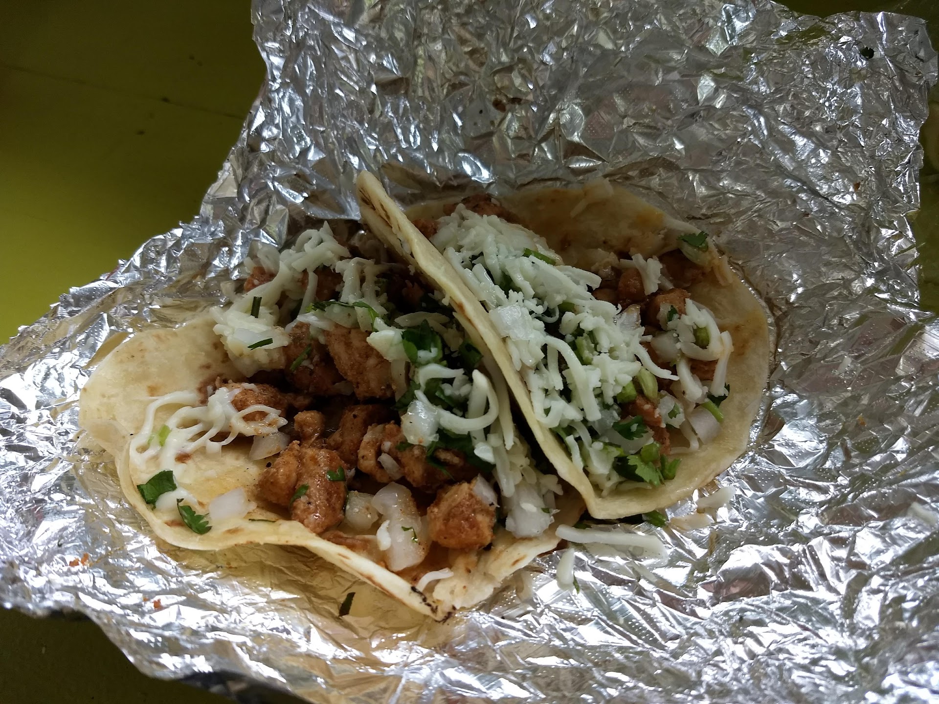 Second, the taste was really good given the cheap price. The chicken was a bit on the salty side, but that also could have been due to the cheese. The barbacoa had good taste, but unfortunately, my second taco was loaded with fat, so I was left with a higher tortilla than meat ratio for my last taco. The corn tortilla fell apart on my third taco but held up for the rest.