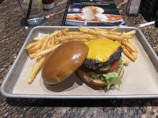 I took my sons out for lunch before a movie today. We arrived at noon (on a Monday), and it wasn't busy. There were only a few tables occupied with guests. The host was polite and professional and seated us at a booth. Our waiter, Rick, didn't take too long to come and ask for our drink orders. He was polite and friendly enough, but forgetful? I had asked him a question, which he said he would ask management and get back with me, and he never did. He also forgot to comp my dessert, although I had shown him my app reward when ordering it, and he said his computer already showed him everything about my online app profile. (😳 which I thought was kind of weird) He comped my dessert quickly enough when it was brought to his attention and was quite nice about it. He was good about checking in with us and refilling our drinks throughout our stay. As I said, it wasn't busy inside, so I'm not sure what took the kitchen so long to cook our orders, but we were there an hour and a half from arrival to departure, and it made us late getting to our movie showing. I ordered the Bacon Guacamole Burger with fries, and a Strawberry Daiquiri. My burger was so big I couldn't bite into it with the buns, so I removed them and ate it without them. I ordered it well done, and it came out perfectly and tasted very good. My fries came out cold, however. They would have been delicious had they been fresh and hot. My Daiquiri came with a lime in it, which is weird, Daiquiri's don't normally come with limes, and i hate the taste of limes, so every sip tasted off to me, making me wonder if it was in fact, a margarita, instead of a daiquiri. The hot fudge brownie pizzookie dessert was okay, i woukd have preferred if they had cooked the brownie part just a tad longer so it wasnt so soft and mushy. One son ordered the BBQ Tri Tip steak medium rare with mashed potatoes and fries, as well as a Berryburst pint and The Lucky Ducky. The little bathtub it comes in, with the little plastic duck in it, is so cute. He said both drinks tasted very good. He also said his steak and potatoes were very good and he thoroughly enjoyed his meal. My other son ordered the Rib Eye, well done, with a baked potato and French fries with a Long Island Iced Tea. He enjoyed his potatoes, but said the steak was too fatty, and would have preferred it to be seared longer, as it had a too-soft texture and he would have preferred the steak to have a bit firmer texture. It also lacked flavor and needed some seasoning for his preference. The baked potato was okay, just a normal baked potato. He said the LIIT was very strong and tasted good. Overall, we had a nice time, despite the long wait time to receive our food and my fries being cold. It's not a place I will probably visit again. It's a little pricey overall, and I would've enjoyed a meal somewhere else just as much or more, than I did here. My total bill, with tip, was $160 for 3 meals...