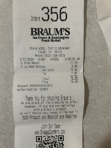 I've been to Braum's twice now, and while the food never disappoints, the customer service leaves much to be desired. During my recent visit, I utilized the drive-thru, and from the get-go, it was clear the staff were not up to par. The employee taking my order seemed impatient and audibly sighed as I took a moment to decide. When I reached the window, there was confusion about my order, leading to further delays. Additionally, a simple request for ranch seemed to provoke unnecessary frustration from the staff. To top it off, they didn't have ketchup, which is a basic condiment that one would expect a fast-food restaurant to have readily available. While Braum's food is consistently delicious, the disappointing service at this location makes it hard...