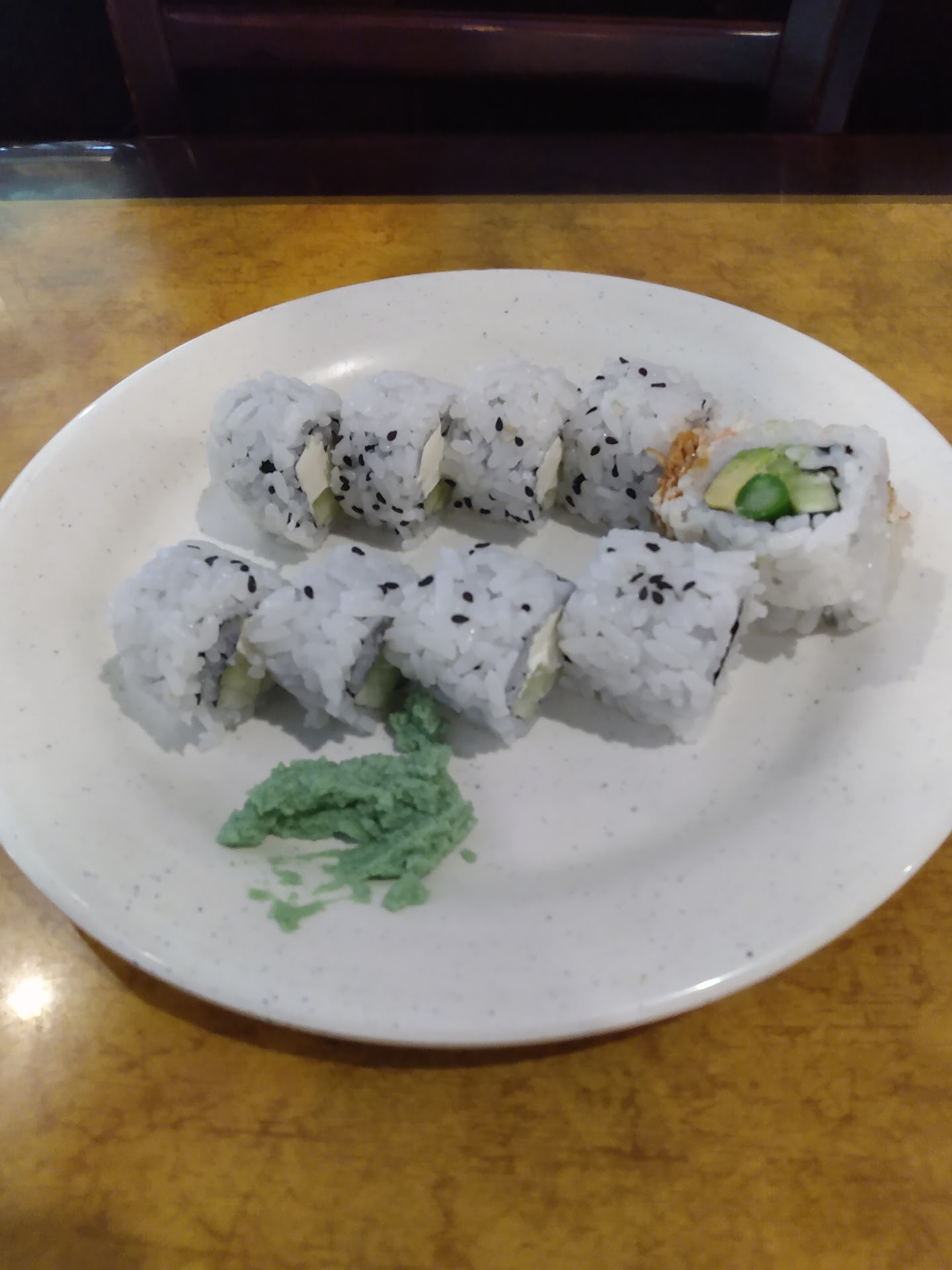Read moreEver since they remodeled the quality of food & service have gone down hill...plates sat on the table getting stacked while tea glasses sat getting unfilled...also if you want jalapenos in all of your sushi then they are your place, otherwise be prepared to pick out jalapenos in every piece...the guy was making it there & I asked why jalapenos were in every roll he made & he argued with me that it wasn't...news flash buddy but when I have a plate full of jalapenos after getting a plate with one if everything then yes it is & that's a problem...my daughter who is 5 loves to get sushi, but I didn't specifically get any on her plate due to the jalapenos, I looked over a piece I had & couldn't see any like the rest of the it so I gave it to her & she spit it out crying because it was hot due to the jalapenos there was a little piece cut up hiding in it that you couldn't see until it was opened up & my daughter wats chips & hot sauce like it's going out of style whenever we eat at a Mexican restaurant, so it's not like she can't handle spicy food...my biggest issue is for someone like my dad who is allergic to jalapenos who wouldn't have even thought about there being jalapenos in the sushi, because he gets some everytime we go to buffet & never did once had an issue