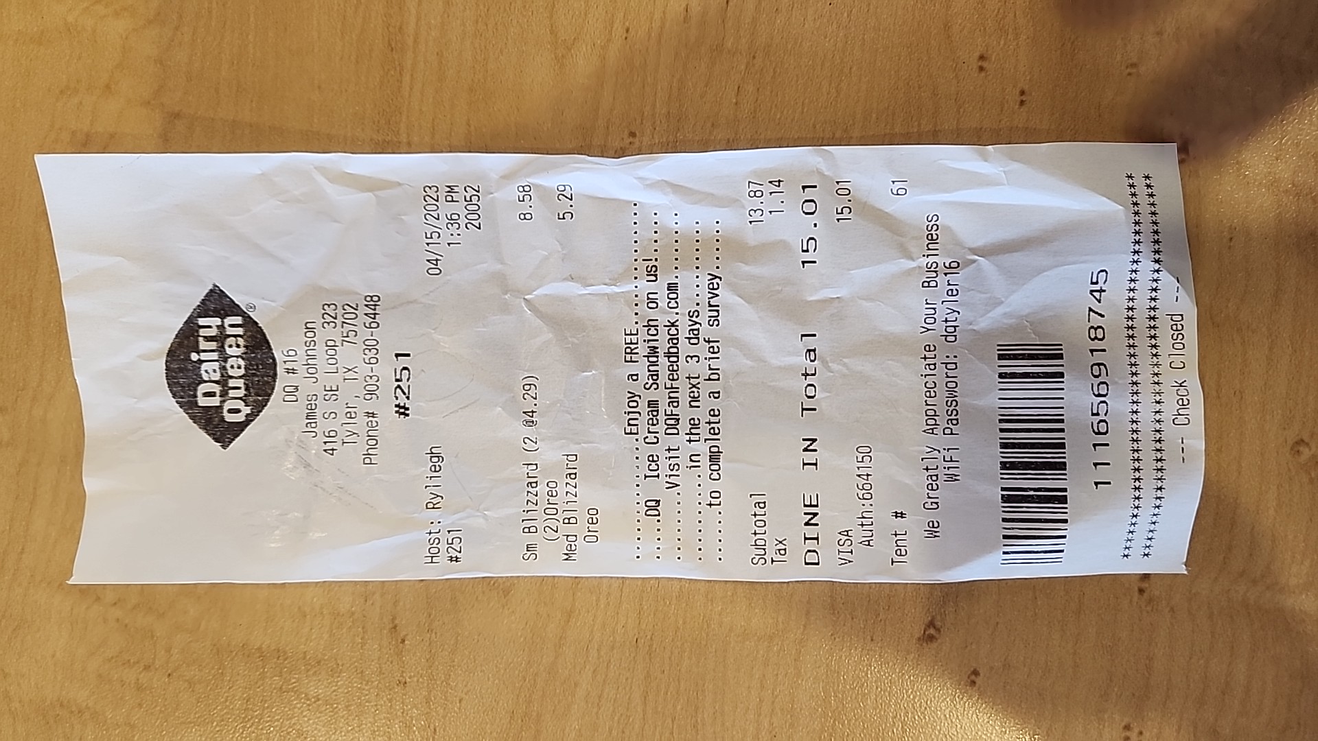 Ā Ā Ā Read moreOrdered a dude w extra mayo & tom, & hotš. But order was not correct. So since l lived out of town (30 miles) Big Sandy So did not want to turn around( weather was getting bad) So l called & spoke with the manager, l she advised me that she would put my name on the wall & that she would replace my entire meal when l came back in town. So on Yesterday 1-31-23, sleeting ice & rain. They my only wanted to only replace my dude sandwich but not give me the š.They wanted me to pay for the fries. I asked then could l get a half cup of ice w cherry juice, they wanted me to pay $1.06 for that.But w great attitude brought me the sandwich.(April )So l told them l was going to call their store manager & hopefully he or she could make me a happy customer. But at this point l want ever go back there. The DQ next to Wal-Mart on the East side of town on 31. Customers should be your happiest people. You have a nice location & , looks clean, but l went through drive thru.But know customers should ALWAYS right. But oh well, l'm to Blessed to be Stressed, To anointed to be disappointed, & too equipped to be whipped. Have a Blessed...