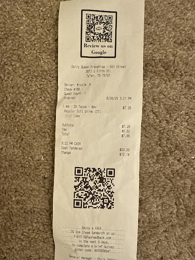 Read moreI stopped in for lunch today at the 5th street location and when the guy at the drive thru window with the glasses handed me the food, it was without the a bag. This happens Every time I go to This location, Today I again asked if he could put the food in a bag, this made him visibly upset or angry. I had previously told him that when he stuffs the napkins into the slit of the box they come in contact with the wet toppings and at that point are unusable and that the other stores put the food in bags...I Never have to ask. As I sit in the drive thu, I'm looking directly at the bags he should be using, but for some reason, he doesn't use them. I don't know what the protocol is for bag usage there, but if you no longer require the food to be put in the bags, please move them to where customers in the drive thru don't have to stare at them just hanging in the preparation area.....but not being used. It seems to me a common sense thing to put the purchase in a bag, I don't believe I'm...
