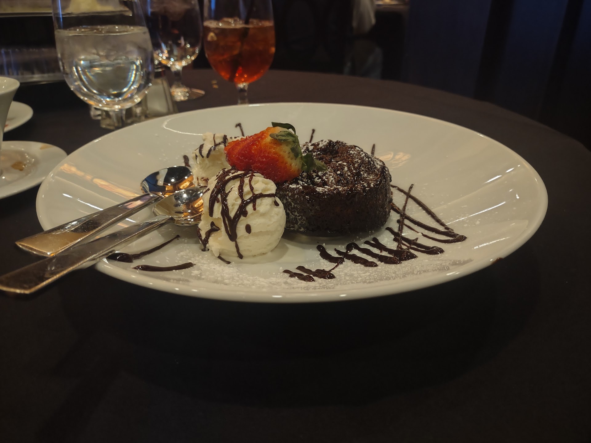 We went to the bar and received prompt and cordial service. We were only there for the steak, so we both ordered the Waygu Ribeye. $59/plate, but I remembered the last steak I'd had there, and it seemed well worth it. It was indeed worth it. Huge choice cut, cooked perfectly to order and seasoned/treated beautifully.