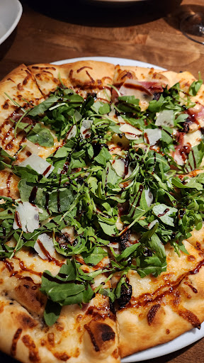 Our New Favorite: Delicious, Trendy! 2 parts: excellent in house roasted coffees- pastries & restaurant in the back: wine, delicious sandwiches, flatbreads & more for customers who want top end flavors for their time & money!! Had the Steak & Goat Cheese Sandwich with $3 upgraded rosemary parmesan fries (🥰 yummy!) @ $15.... sampled a Hazelnut Latte ($4.50) which had an exceptional richness due to inhouse roasted coffee beans & homemade hazelnut syrup!☕🎉🥰 you can even purchase their inhouse roasted coffee beans!! 🥰 Highly recommended Enochs Chomp: its all very good!! Your tastebuds & your wallet...