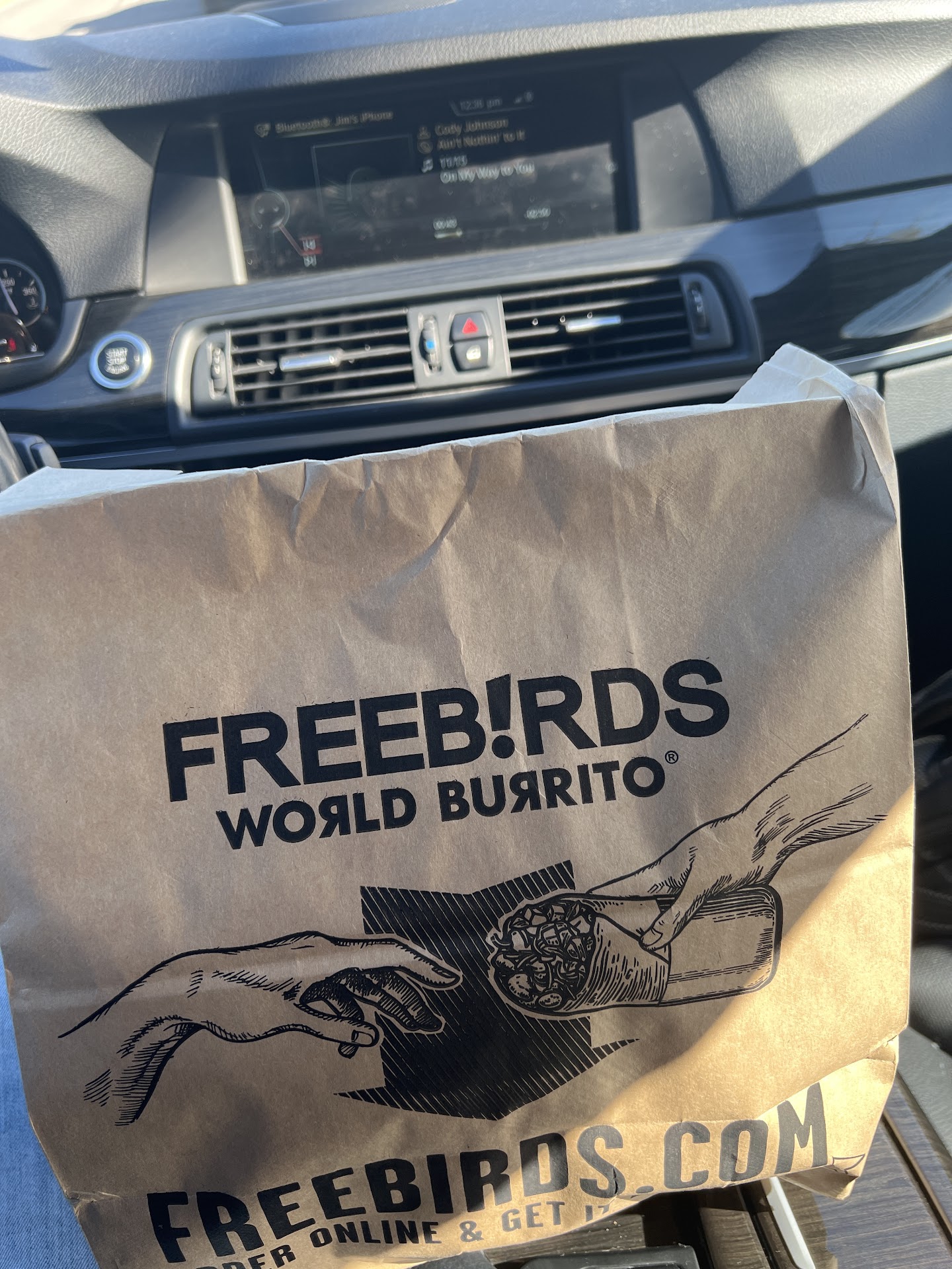 Update: Freebirds made up for the mistake. I really enjoyed my follow-up lunch date with my wife. The pulled pork Freebird was good. A few things for work on: I think they need signage either by the items that cost extra, or tell you, hey there is a $1.40 charge for this one small scoop of queso, do you want it? It might have been on the menue board, bit that is not where I am looking when the are making my burrito. Also staff need to talk more. I tell the first guy a free bird, and the second guy wasn't paying attention, and I almost ended up with a monster again. Also, the tables need to be cleaned more frequently. Otherwise, it could have been a 5 star for me.