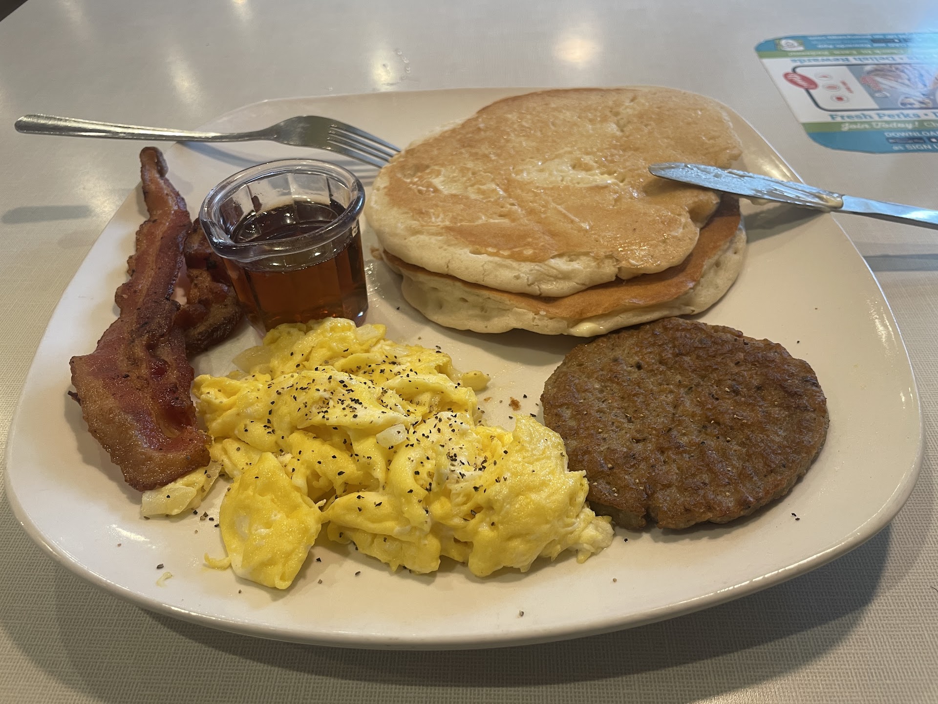 I ordered the country skillet, mostly because I liked the way it soundedâlike something you eat before setting fire to a barn. It arrived heaped and sizzling, eggs over-medium with just enough run to remind you that nature doesnât always finish what it starts. The sausage was spicy in a way that made me feel watched. The potatoes were goodâtoo good, maybeâand I began to wonder if anyone who eats at Jimmyâs Egg ever really leaves, or if they just dissolve into the furniture one booth at a time, their souls spooned up with gravy and passed on to the next.