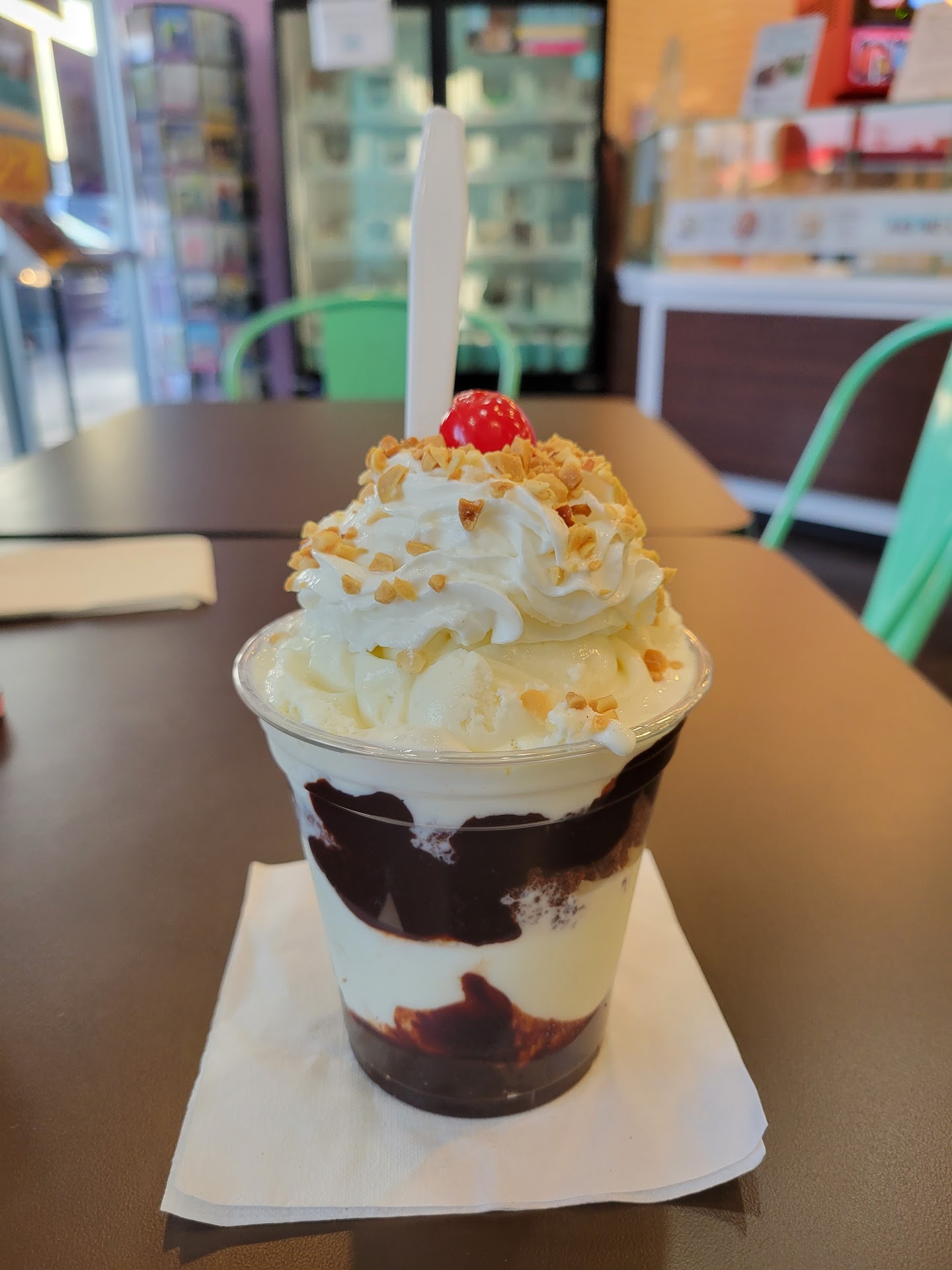 Where to start. When we first talked through the door, the first thing I noticed was the overwhelming smell of sour milk. Followed by the hammer fisting of my face with the smell of bleach. ( presumably to hide the milk smell) As someone who's managed restaurants for over 2 decades I found gross but not a deal breaker. Then, a person with large cheesy sunglasses walked in the front door, behind the counter and proceeded to start tasting ice creams, all without washing his hands or wearing gloves ( later small talk with the cashier revealed this was the managers son appearently) I proceeded to purchase my ice cream for myself and my guest and looked around for health inspections and food safety certificates. I could find NO recent health inspection which was a red flag for me, but even scarier than that was the expired certifications for what I can only assume are the owners as their names didn't match the name of the GM. I later watched to go orders get made and instead of bagged and put somewhere separate, ther were placed back into the cooler alongside the ice creams for public consumption, all after gives had been removed mind you. There seemed to be one competent individual there on this particular occasion named heath, or maybe hank. I came on the recommendation of multiple guests of my establishments who had met a male manager with a ponytail who they spoke very highly of. I cannot speak for him or their experiences. Only that food safety is clearly bottom of the list here and that heath ( or hank) at...