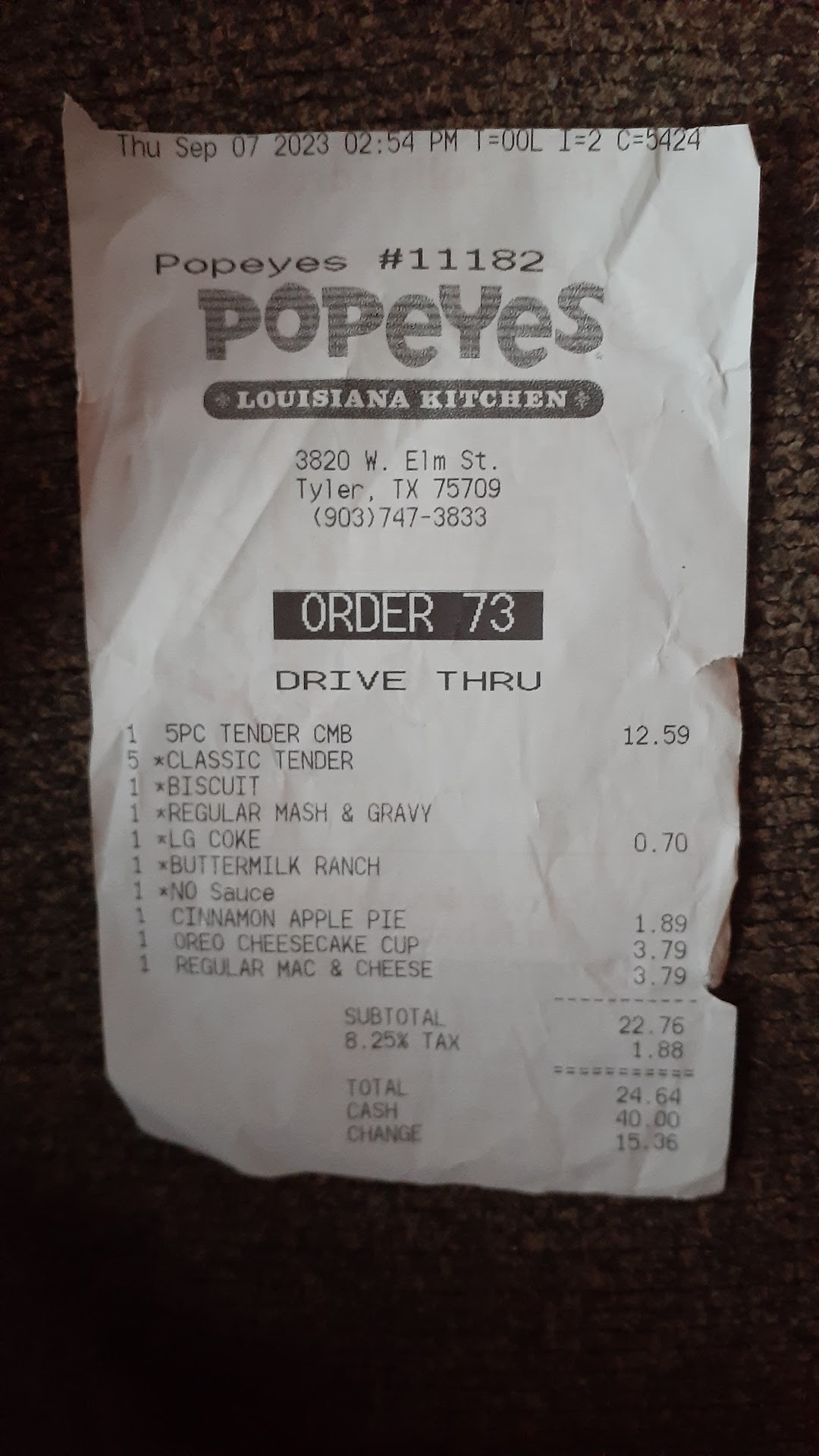 The reviews below this one are from previous experiences, but this review is from today... I frequent Popeyes and I've made a few reviews but I had to sit out here in the parking lot and give a review today. I'm at the Tyler location and first I want to say that the food is typical Popeyes, it's good. This location is usually pretty clean and it's always good and they've always done a pretty good job at customer service but today was probably my best Popeyes experience ever. It was probably my best fast food experience ever. I left out of that store feeling great about life in about Humanity, the whole nine yards. The Kilgore crew, GM Willie Woods, employee Matt Freeman and employee Corey Huff we're probably some of the most nice people I have ever met with excellent customer service. Willie Woods was running that place like a true champ. They were busy and he was all over the place. Matt Freeman was the guy ringing me up and he had to be the most polite and humble young man I have ever encountered. His parents should be super proud that they raised an awesome young man. Same goes for Corey Huff, super customer service skills and a great attitude. They were all smiles and doing their job perfectly. If I own a fast food chain or anything for that matter I would definitely want this crew to run my place. Popeyes you made an excellent decision hiring these guys. GREAT JOB!!!!!!!