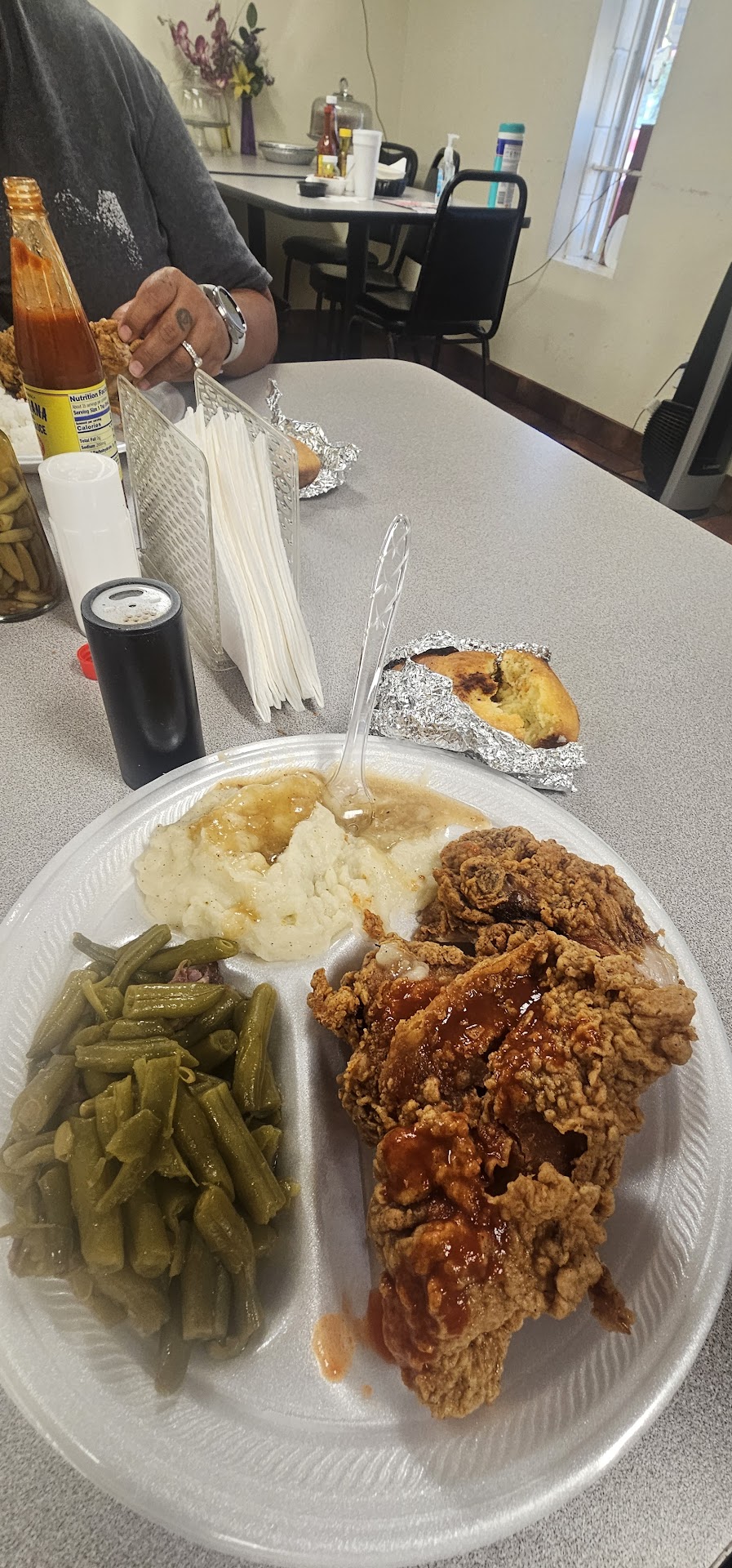 Read moreBest soul food restaurant in ALL of East Tx!!!!!!! Great down home service that makes you feel at home and welcome. Everything on the menu was absolutely mouth watering 😋 I ordered Smothered Pork Chops with Rice,Cabbage & Gravy and a side of sweet cornbread with a big cup of Grape Kool-Aid. The staff is full of kind and beautiful women that tend to you in a fashion that a person can only...