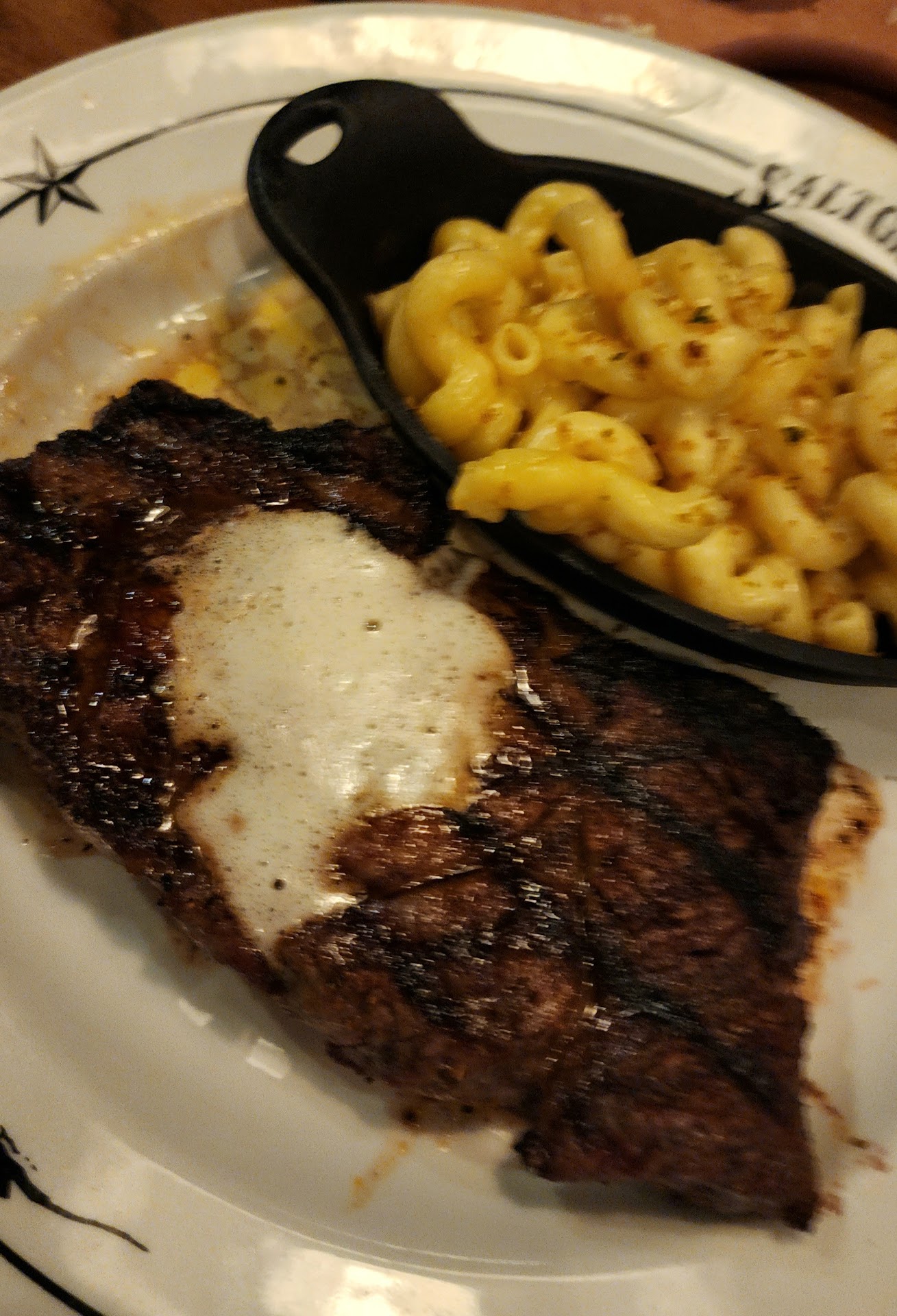 I had a 6oz sirloin, salad, fried mushrooms and a baked potato along with a "Ranch Water" (Topo Chico sparkling water, tequila and lime juice).