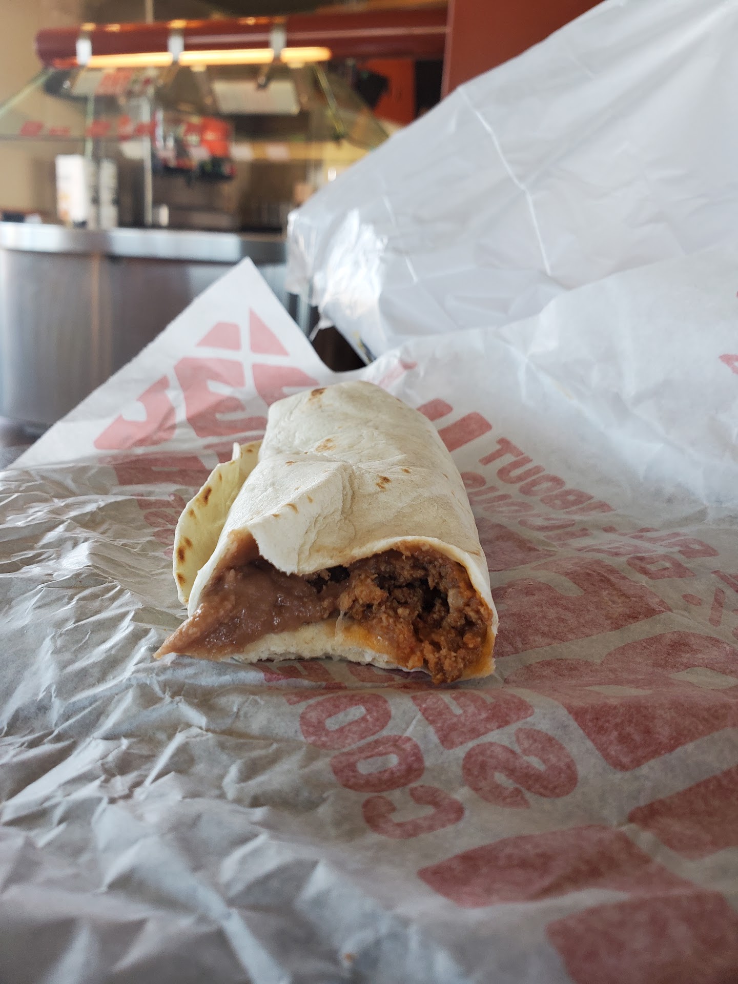 With this the tacos, burritos etc are all made with the same exact ingredients. Its just wrapped up in a different types of pseudo tortilla. So the burrito taste the same as a taco just with a different wrapping texture.