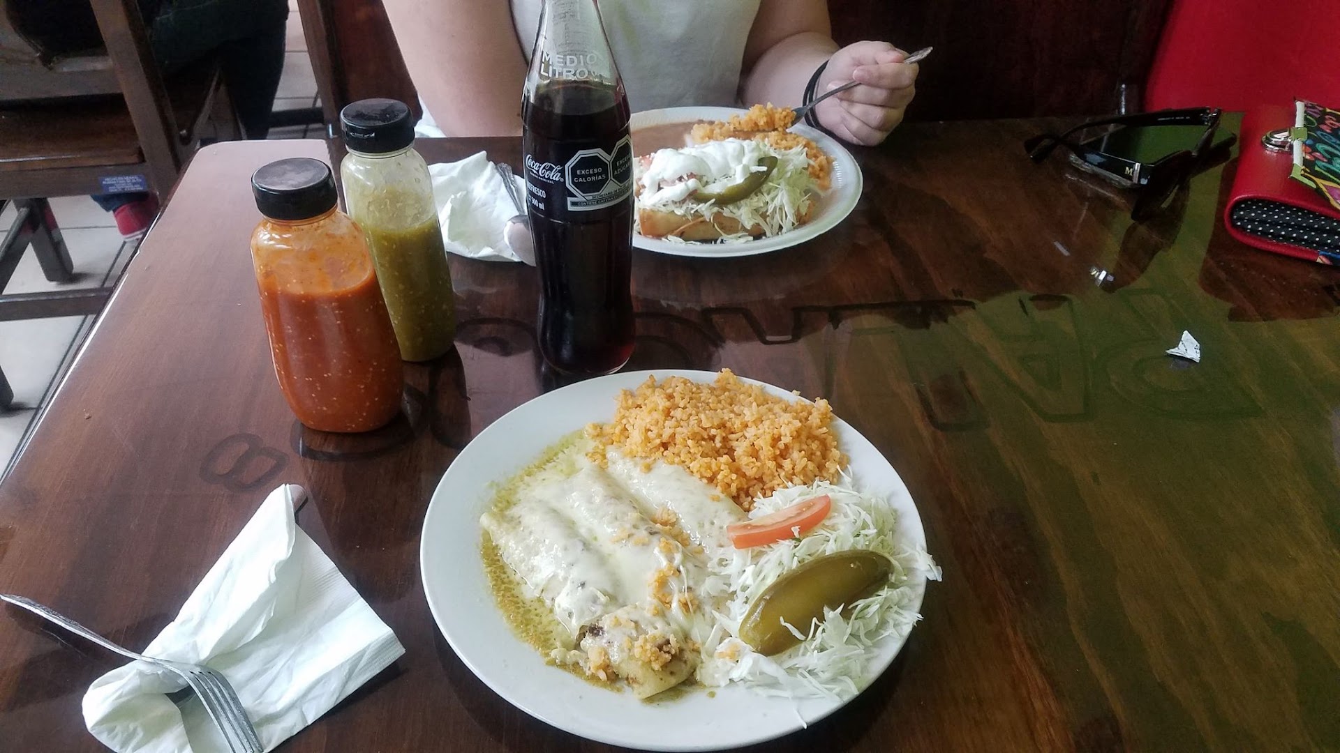 Read moreLooks clean. Really good tortillas. Tacos and sopes were a little disappointing, not much flavor. I was expecting more of a grilled chicken for the tacos, but it was shredded and a little tough, my kids didn't even eat it (and they eat just about anything). Carnitas was a little bland too, but the fajita meat and that green salsa was pretty good. My husband got the mole and he thought it tasted good but it only came with one wing and one drumstick, so not a lot of meat there. The girl at the front was nice and she checked on us often, which I really...