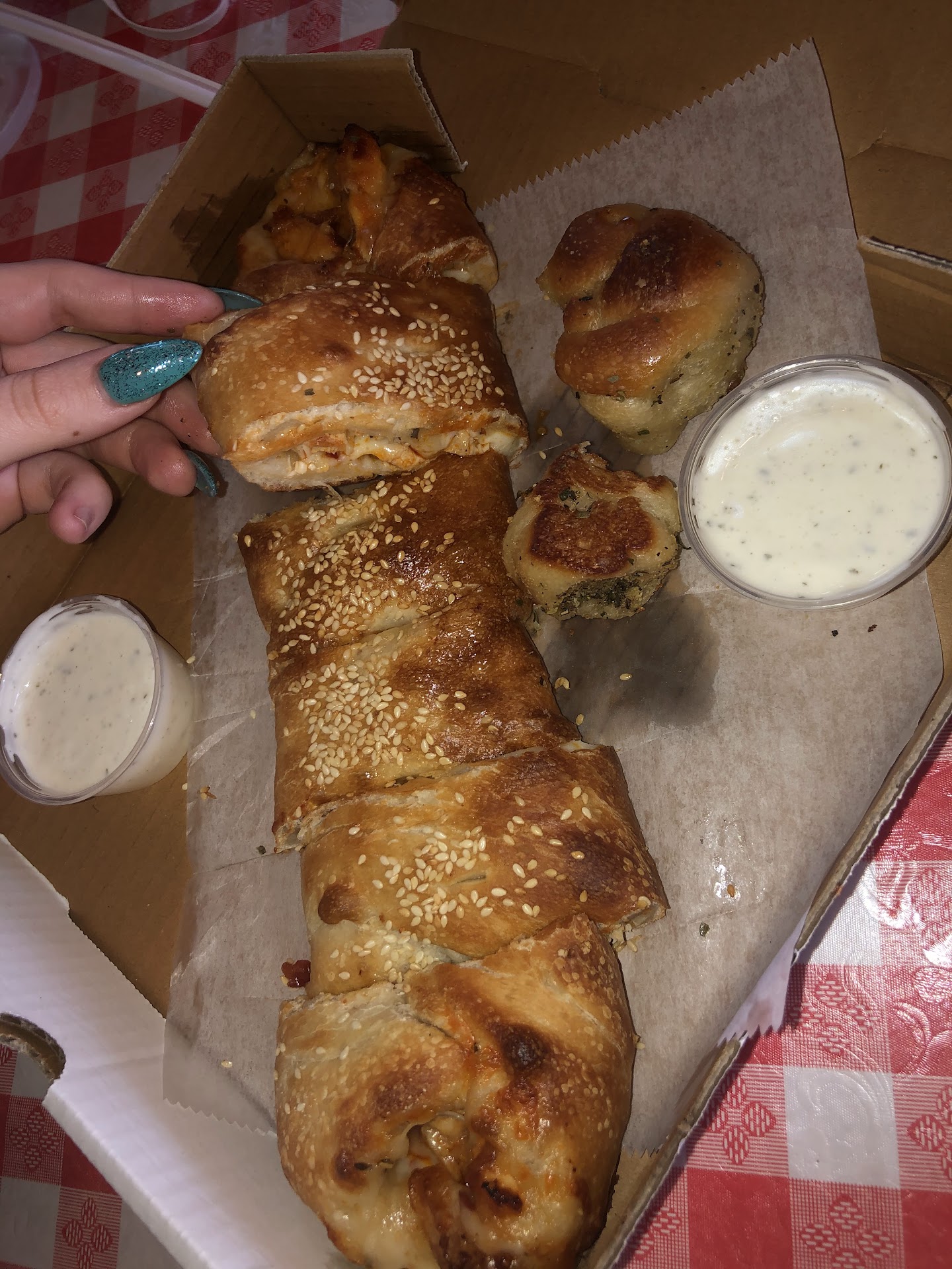 As I drove the short 6 blocks back home I decided to grease the steering wheel by handling a couple of the garlic knots. They were brilliant. Unlike other places, these were far more thought out. The bottoms were crispy while the fluffy tops were slightly yeasty like a light sourdough bread. Salty and buttery tasting. I was pretty excited to try the pizza.