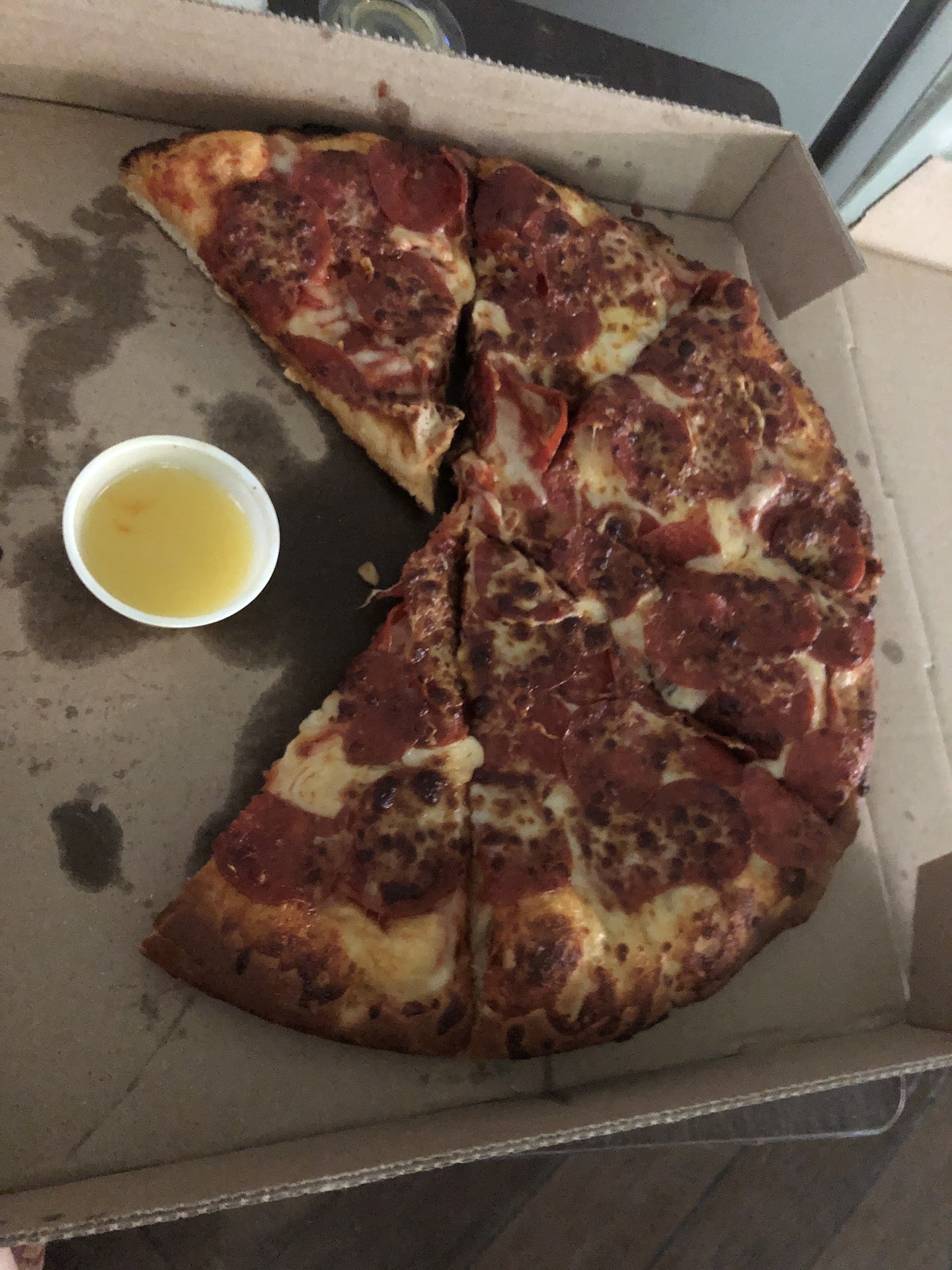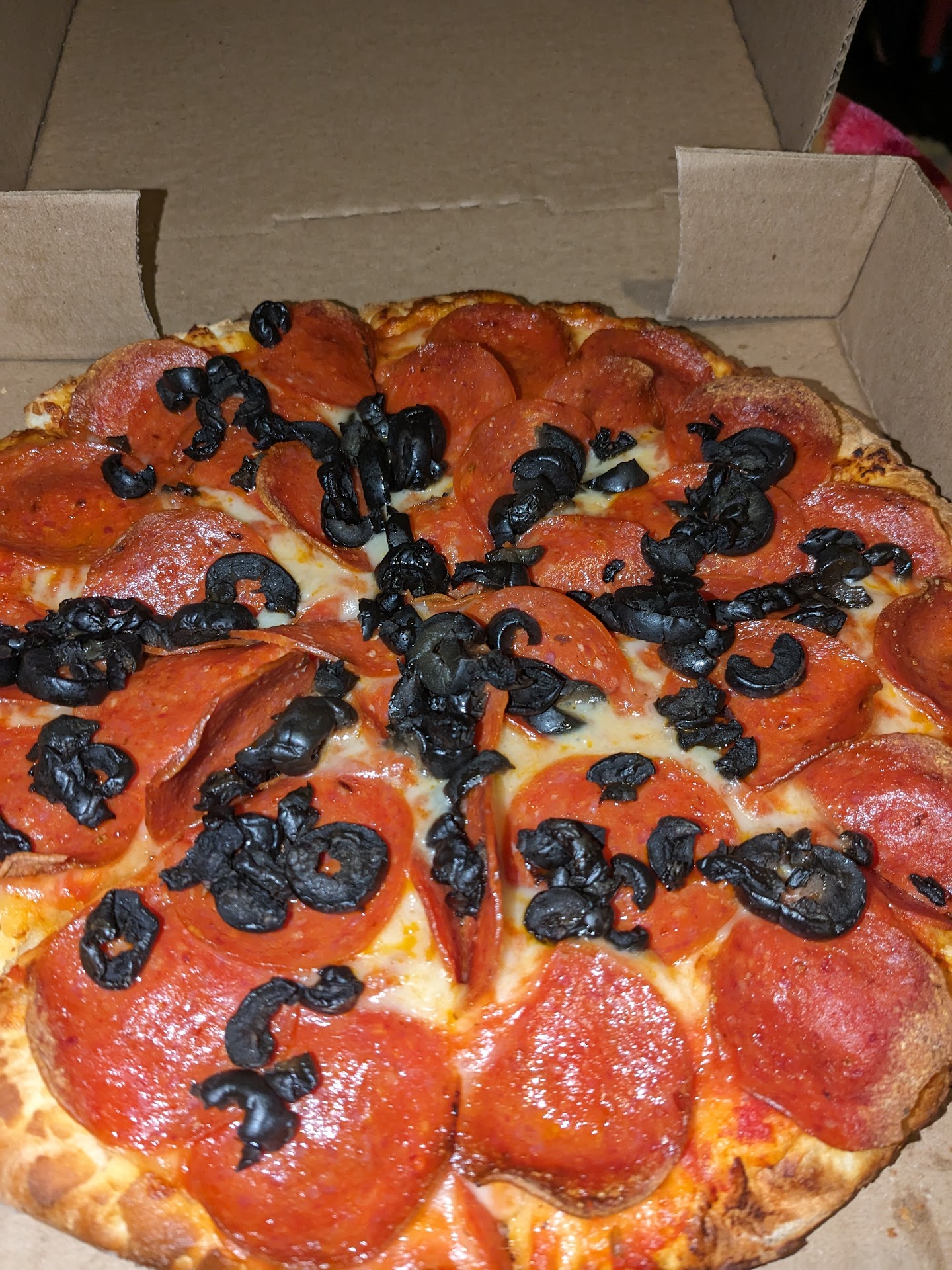 100% can say this is the best pizza in Tyler Texas. We had a standard crust pepperoni with olives and a thin crust half and half pizza which consisted of cheeseburger and the other half was a meat lovers.