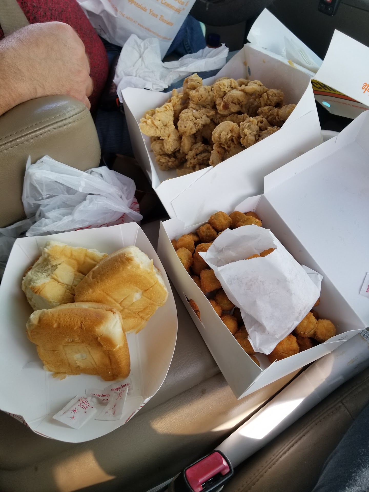 Expect a bargain and a wait time for fresh fried chicken. I found the quarters to be popping hotter on days that are quite cold, almost freezing. During power outages they are at times open. It's a drive thru; the paint and markings are clear to follow. The order will come out the drive thru window, you may be asked to park. If you are asked to park you may or may not be asked to walk to the pick up window. Get extra napkins if you need them. Experiences here for me has always been dependant on the Holiday or time of night including other dynamics. I enjoy! It's something good to pitch in 4 dollars for a few pieces of chicken if a few people pitch in it's better and better. I've ordered soo much chicken I got anxious waiting I won't complain since it's fresh then it was all over when all those pieces were in my car. It's good!