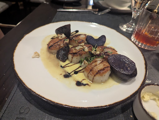 Guess what else was fantastic? Literally everything else. We split the Grilled Octopus app ($25), which came with lightly fried tostones. Honestly the best octopus I've ever had. Super flavorful and this is a food I think where texture ends up being very important. It was cooked perfectly and not rubbery in the slightest. Entree-wise, if I hadn't accidentally had short ribs the night before that's probably what I would have ended up getting. Everything happens for a reason though and I opted for the Venison ($54). Also the best venison I've ever had. I don't think a lot of places really know what to do with it since it's JUST different enough from beef where you can't cook/prepare it the same way so I usually end up eating it in stick form where they can't mess around with it too much. This was awesome though. You can see from the accompanying picture that it was cooked close to rare, and that was for sure the right call - made it juicier and tastier. Deer never get high class treatment like this and frankly I'm not sure they deserve it. My chum got the Pan Seared Diver Scallops ($49), a dish she's gotten quite a few times in my presence. This was the first instance where she did so and gave universal acclaim. I tried one and was honestly blown away. Scallops are pretty hit or miss for me but these were great and very fresh.