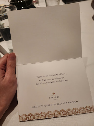 Fleming's Prime Steakhouse made our night special with a Happy Anniversary card signed by staff, Sparkler, and box of...