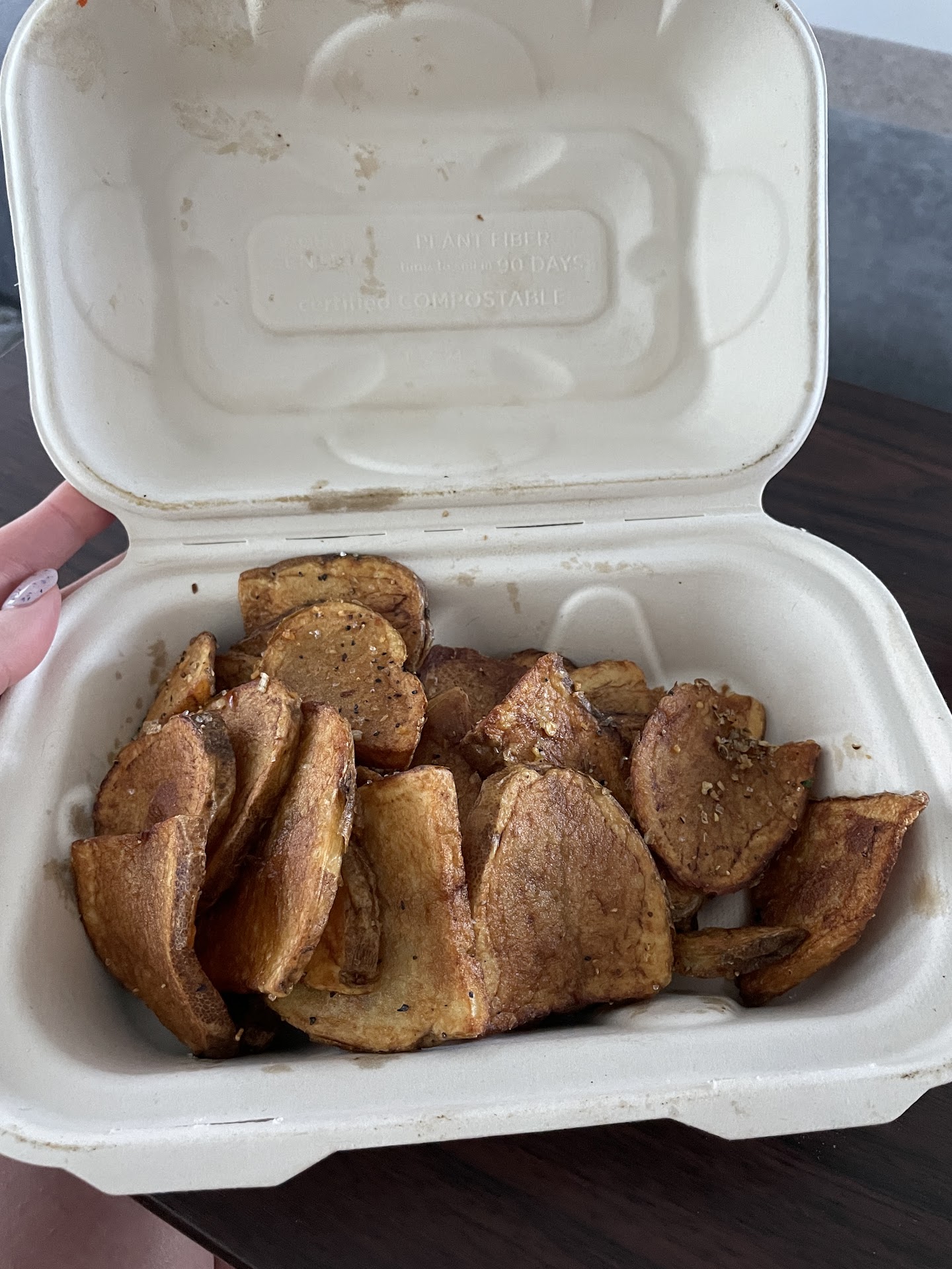 Read moreFood was just ok. Main reason for a low review is 2 issues. Food was way to greasy and you will get the oily stomach feeling that will last a couple hours. Biggest disappintment was the dripping oil from the onion rings. Not talking about 3-5 drops of oil, we talking a steady stream of oil here. Wont give 1 star because it will differ for vegetarian meals. I would love the food if it was less greasy/messy. Last reason is the price, I understand inflation but this is a new level. burgers and fries prices are reasonable, but really, $3 dollars for a fountain drink? $1 for 7 canned jalapeños? at least use fresh jalapeños. Not to mention other add ons that quickly add up. $11 for a banana bread? I will say it was an ok bread but not $11 worth.