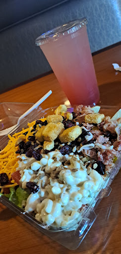 PROS: -Awesome Pizza. Nice crust and tasty combos, -Awesome Salad Bar. Nice variety. -Clean and relaxing dining room. -Friendly staff.