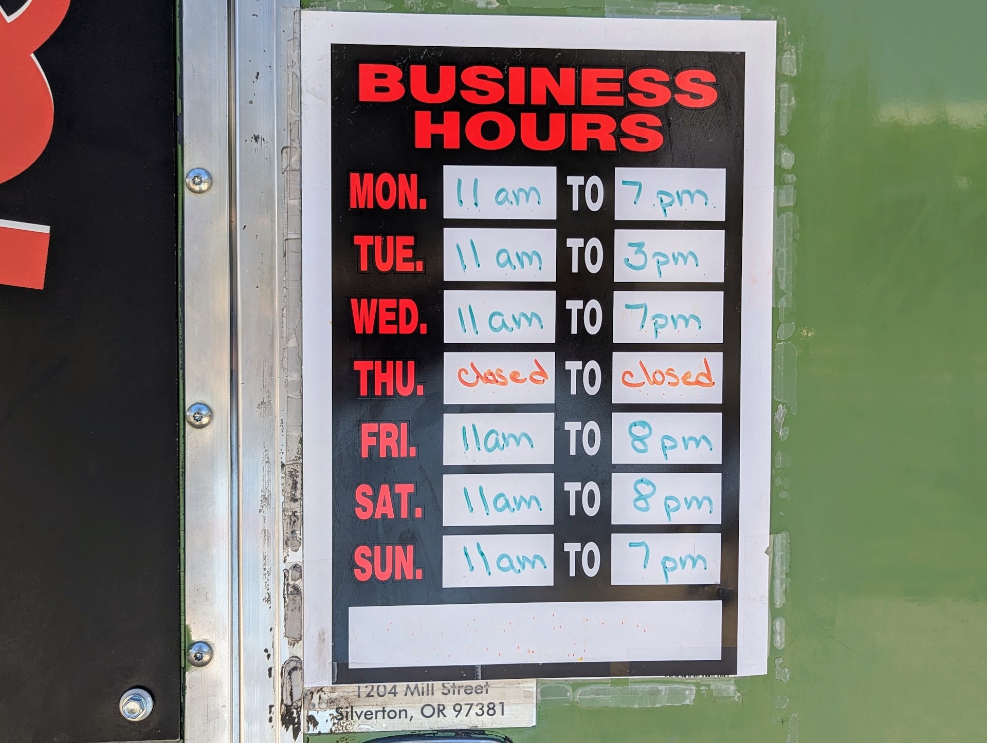 Everything was closed in Ukiah including the ONE gas pump. The cafe sign read "open", but it was also closed. Asked local where to eat and he pointed to the Penny's food trailer. Half dozen people sitting on picnic tables in shade had the same idea. Owner/operator was extremely busy but very friendly. Most would get overwhelmed (I'd freak and be very short with everyone in a frantic scene like this) being the only source of grub in this near-ghosttown, but the chef/owner was honest and said "it could be a wait." We had no where to be. Sodas are $2. Big bottled water is $1 each. My friend's $11-ish mini taco basket was forgettable. Probably came out of a Costco bag. But my chuckwagon burger was a homerun! Pile of fries, sauce, and a great price considering you have no options in the middle of nowhere. My other friend's chicken nugget basket came with bread, and was a pretty good meal. Get the chuckwagon sandwich! The menu is pretty big, there is recycling. If we're ever in Ukiah we'll remember to seek Penny's (and make sure the gas tank is 100% full before heading into town). A solid A effort for what...