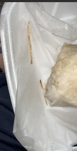 Read moreThis is a screenshot from a video I took, I got home about 3 am after drinking, with my Chicken Bacon Ranch wrap, I thought there was a strange piece of lettuce, turned out the toothpick broke inside of my wrap and was inside my mouth! Thankfully I hadnât had To Much to drink or I couldâve choked to death, I live alone which makes the entire event even more traumatic.