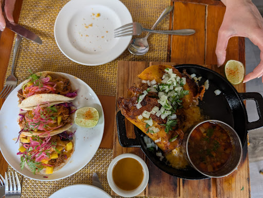When we came in on a particular day, it was completely empty, not a single person inside, we were turned away because we didn’t have a reservation. There was not a single person in the restaurant, so I’m perplexed as to how they couldn’t service us at the time being that it was 100% empty. it was a bit offputting, and we felt kind of dismissed and basically kicked out. We went down the block to flaming burrito and had a wonderful meal, it’s cozier, and the food is less expensive there, and honestly, the portions are significantly larger and more filling. The quality and the quantity is good there, the quantity is not good here though.