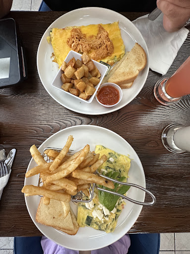 Bad points: The server took our order but never came back—we wanted to ask about the long wait for food. We got our food after 32 minutes, and it was just 2 omelets. The first dish came, and the second one arrived 5 minutes later. Both omelets were not warm when served. The restaurant had music playing, but there were technical problems—the music kept stopping, leaving long periods of silence. The server brought the check, but we had to go to the bar to pay. There were several staff working at the bar/cashier area, but nobody paid attention to the dine-in customers. We know about tipping, but due to the bad service and experience, we decided to leave only 15%. However, the cashier charged 18% automatically without asking. When we complained, she said that they always charge that amount, and she was not friendly at all. When we arrived, only 3 tables were occupied, and just one was waiting for food before us. Still, we waited 32 minutes for omelets. The cashier’s excuse was that they had many online orders, but there was no notice about this, so customers could decide whether to stay or leave.