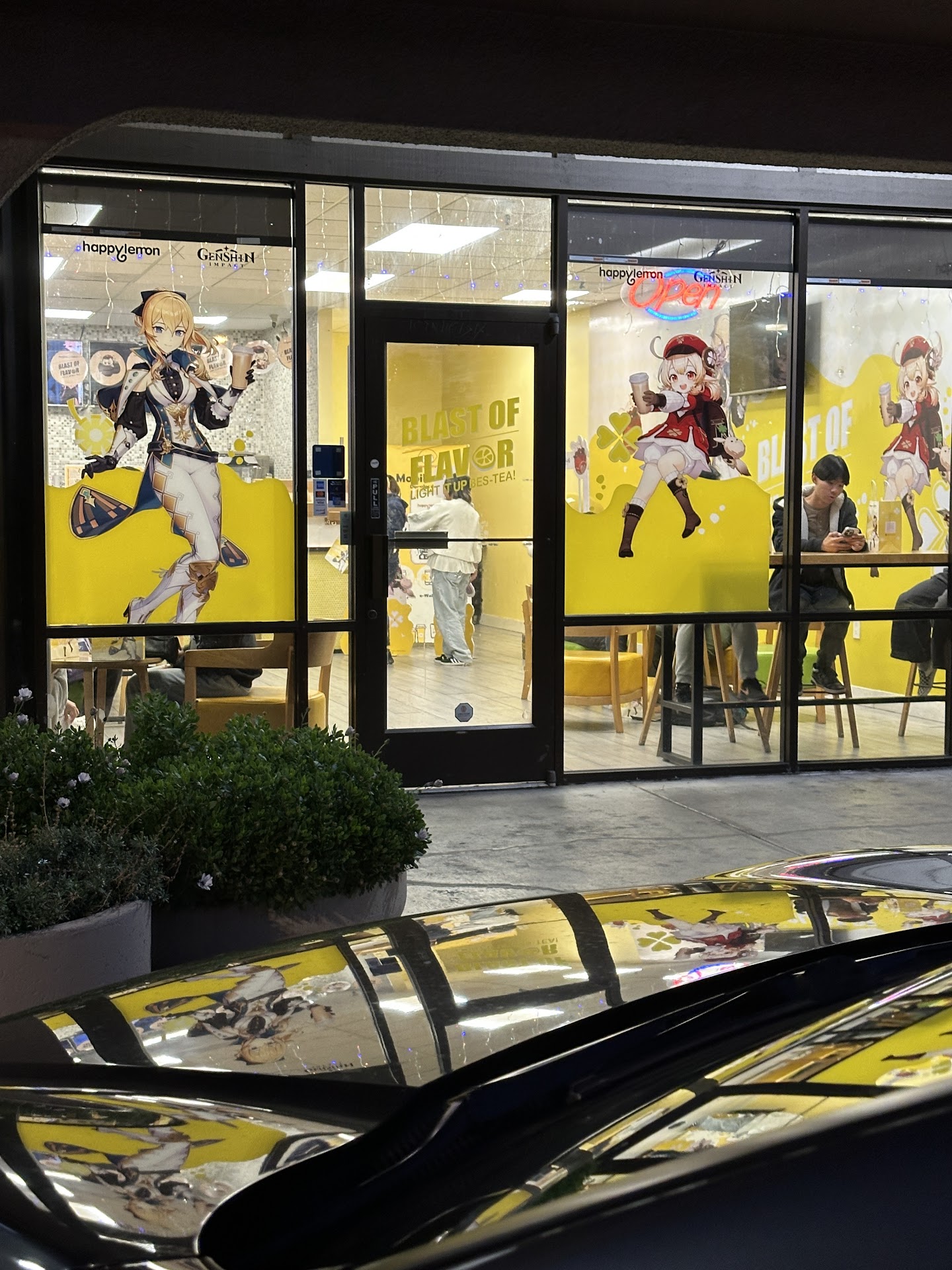 Happy Lemon service & ambiance: Yellow color scheme (of course) with mobile chairs makes for plenty of seating room if staying in. The staff was friendly and they were extremely efficient and quick with getting our 5 drinks order out to us. The flat screen displays the drink orders currently in production and gives real time updates of when the drinks will be finished. I'm a huge fan of real time metrics and I love this service at Happy Lemon.