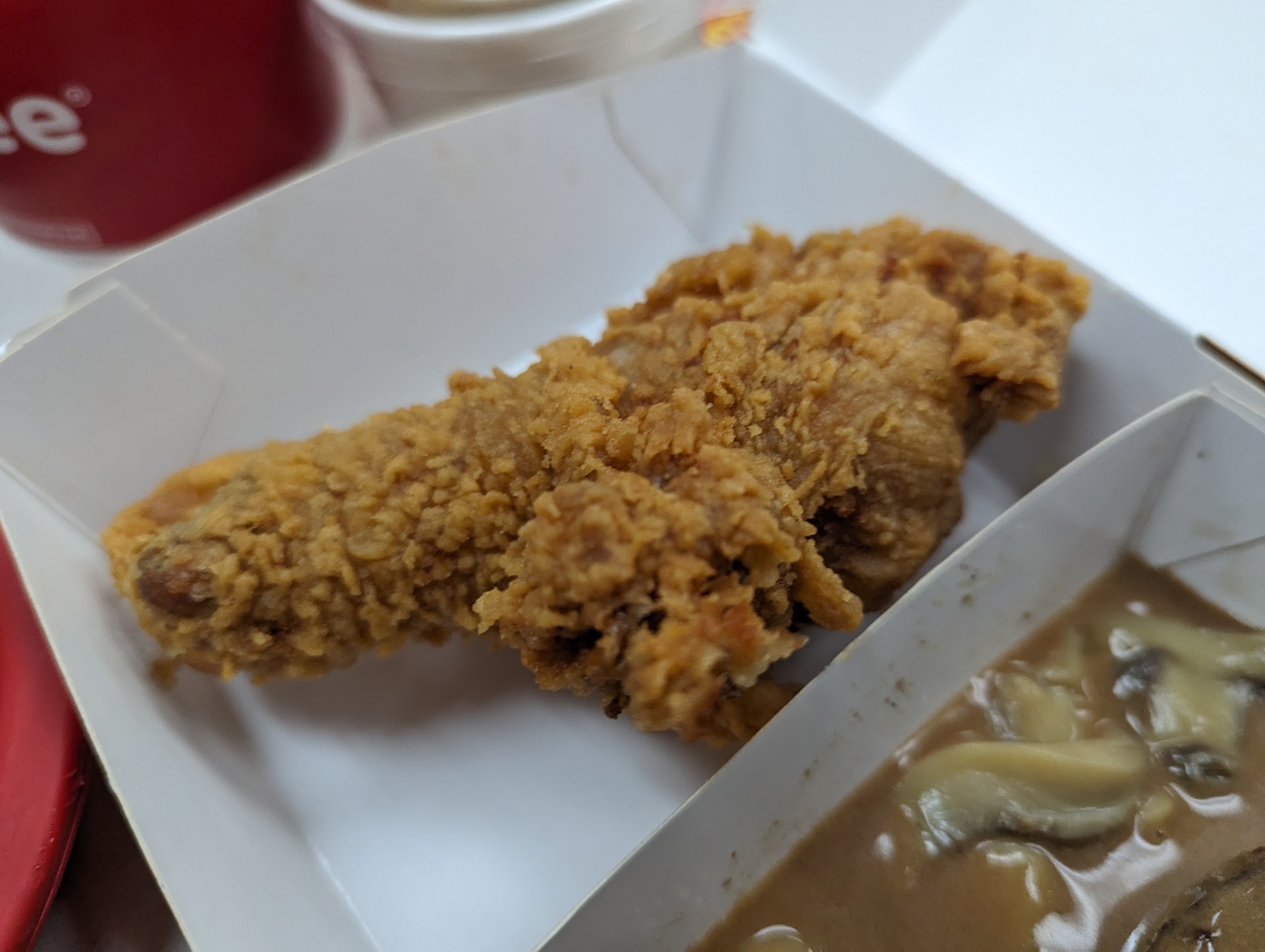The chicken is where it's at though. All was crispy on the outside and juicy on the inside. Freshly hot or later as a snack it doesn't matter. Eating with the gravy is an absolute must.