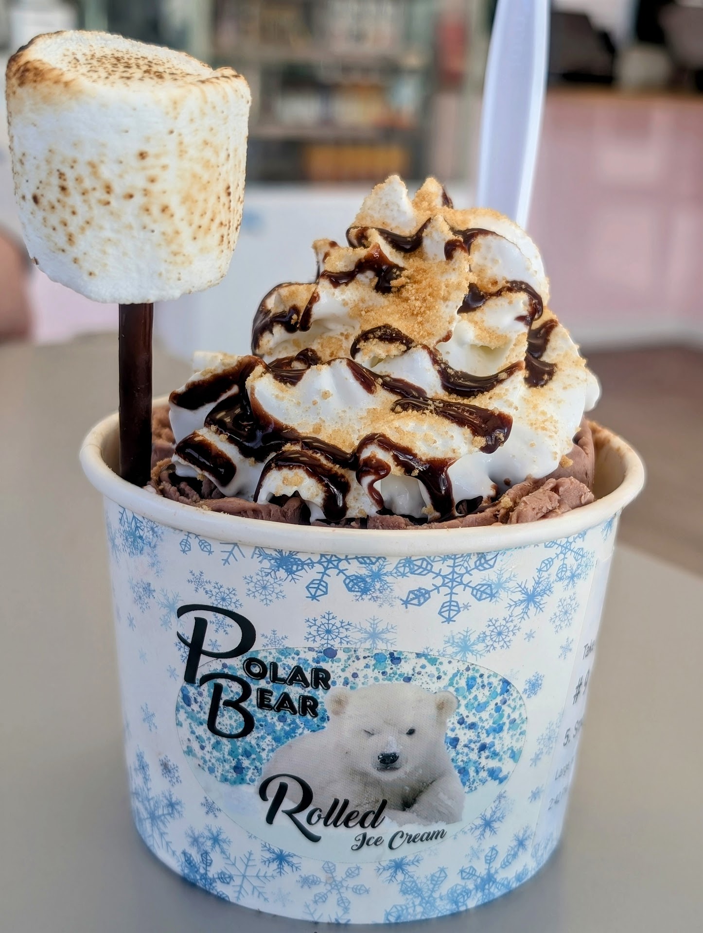 Read morePerfect place to go to on a hot day âď¸. I got the "S'mores Rolled Ice Cream with whipped cream, chocolate syrup, crushed graham crackers on top and a toasted marshmallow on a chocolate stick. I liked that they had a list of toppings/add-ons you can choose from. Either choose from the well known flavors they have or build your own or mix & match flavors and toppings to...