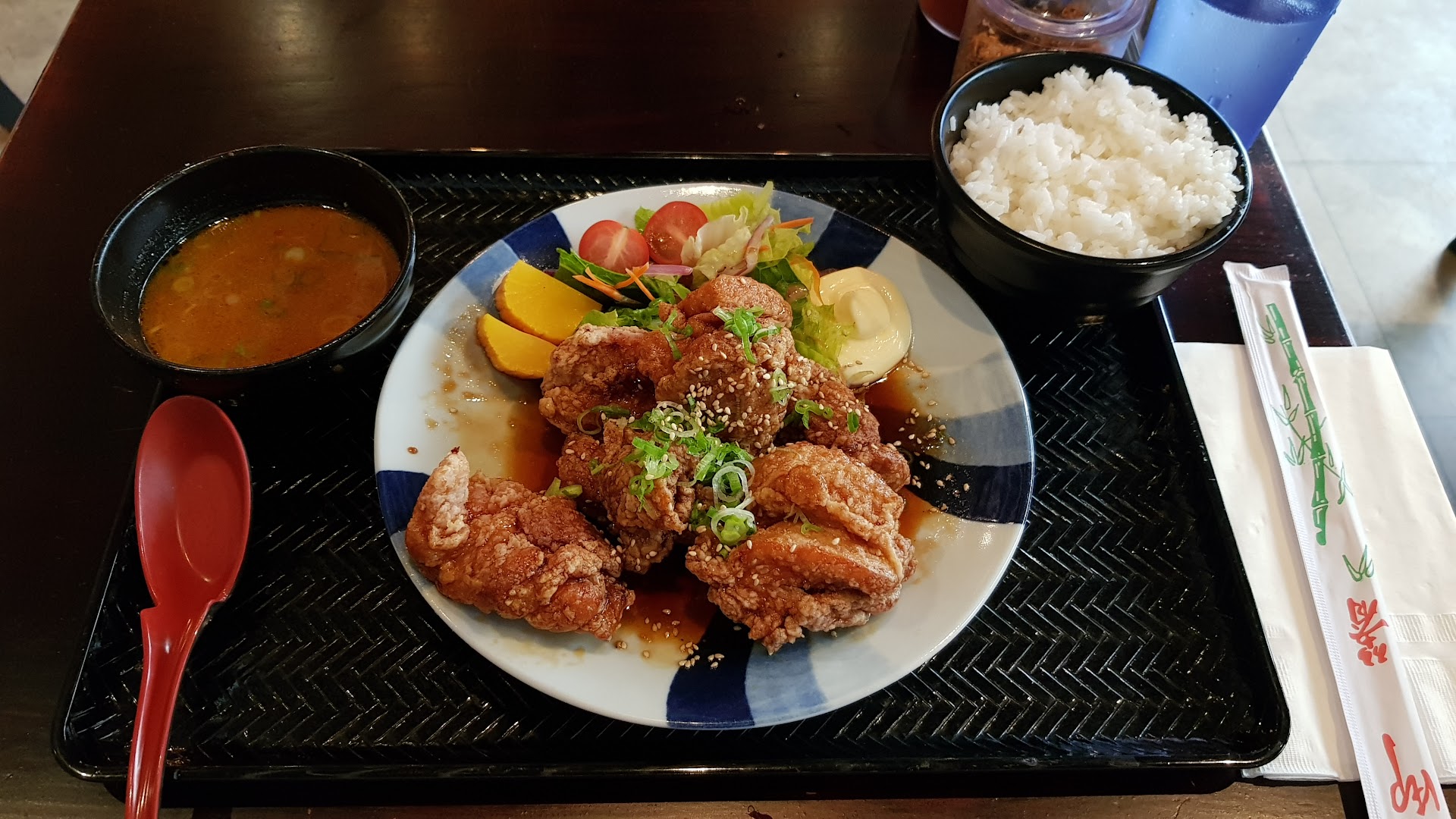 The Chicken Karaaage meal came with a side of salad, soup, rice, and a main dish of 'Tender and Juicy' fried chicken which blew my mind!