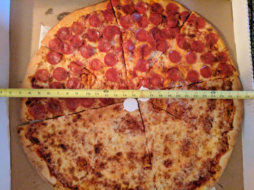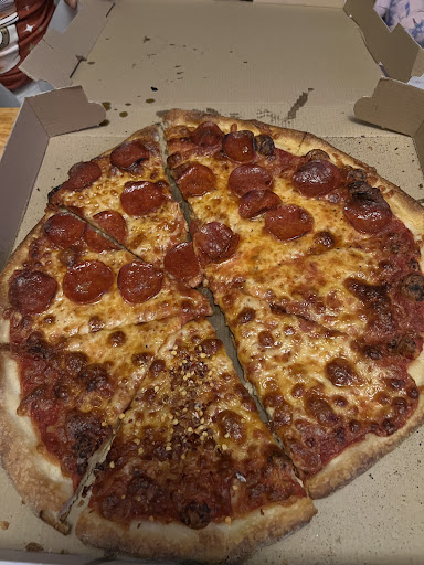 Read moreThe pizza slices in the restaurant are huge. The pizza itself is ok although I did enjoy the buffalo chicken the best. Like many pizza places that just throw it in the oven to heat up after ordering the temperature can vary. For this order the pizza was warm but the garlic knots they put in at the same time were basically cold, didn't have much garlic and maybe on the heavy side with dried herbs. For some reason they give you a cheaper price online vs ordering in store. They do delivery and uber eats. I've been in there twice and they seem to always have uber people waiting inside for orders, one of them seemed upset about the amount of time he was waiting and making a little seen while...