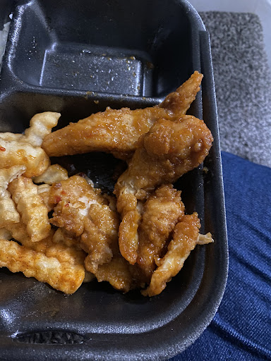 Finally get home and get ready to eat. As soon as I opened up my chicken tender plate, I discovered more issues. Half of my fries were not crispy, in fact they were still mushy. My chicken tenders taste like burnt grease. SEVERELY BURNT GREASE. I ordered sauced chicken tenders but the burnt taste was overpowering. I tried calling the location, but couldn’t speak with anyone. Since I was already home, I had to just take the loss. But I will never visit this...