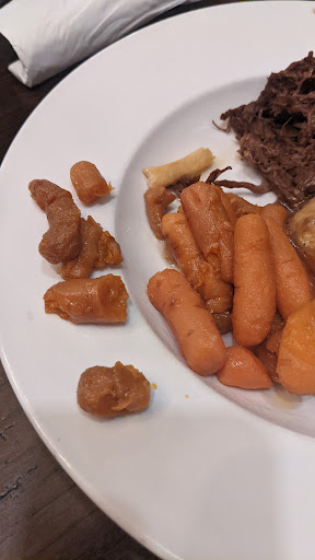 When food arrived the plates were piping hot. Great! My father was the only one that received a correct order of a BLT and Carrots. My husband received a fried chicken salad without dressing and the fried chicken was cold. I received a salad that consisted of lettuce, onion, and cranberries thrown into a bowl. I asked for some pecans the waitress said sure, walked away, returned with nothing to another table and then asked for a box and my check. Walked up front and saw a slew of orders ready under the lights waiting to be served.