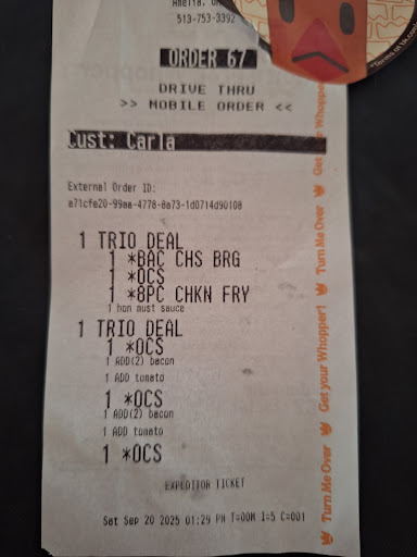 Read moreI go to "Amelia Ohio Burger King" everyday before work so I'm in there quite a bit I have reported many things to the district manager and it doesn't seem like it sinks in because their Coke machine has been broke down for almost a year It has nothing but problems You can't even get the right drink that you want They are out of food all the time If it ain't one thing it's another there is a few cool people that work there but there is a lot of crew that has just straight lazy The district manager really needs to do something about this company It is a shame that they let their company go down this far when you walk in they're ceilings look like they are leaking from water The place doesn't seem very clean If you had a good crew a lot of that stuff could be cleaned up and the place could be running a lot better but like I said the district manager doesn't seem like he wants to do his job so how does other people get impressed by that they don't so that's why you have a bad crew and a bad restaurant It all starts from the top and works its way down it's like the domino effect and their dominoes are crashing They only have 3.1 review I've seen online I only give them one star because how bad the place is running and also because when you try to talk to a district manager he doesn't want to listen or hear anything you say hopefully they get something under control soon It would be nice to go a Burger King and actually get what you want and be out of there under 5 minutes but with this Burger King you'll probably be waiting at least 10 to 15 minutes most orders something needs to be done fast this is downright ridiculous I wouldn't make up something...