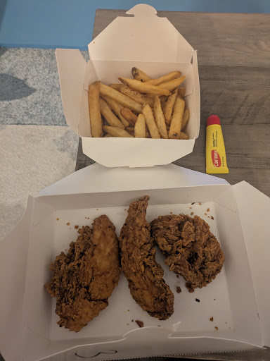 Read moreMe and my wife ordered some takeout on the way home from work. I got their fiery southwest sandwich and it was ok, most of the dressing was in the back of the burger, wasn't very spicy, would rate it a 3/10 with flavor being 5/10. The wife got the BBP, her sandwich was a spice level of 3/10 but taste was delicious 8/10. The Parm fries not spicy 8/10, hush puppies not spicy, bit weird 2/10 and ghost sticks 5/10 spice but 4/10 on flavor. Overall, I probably won't...