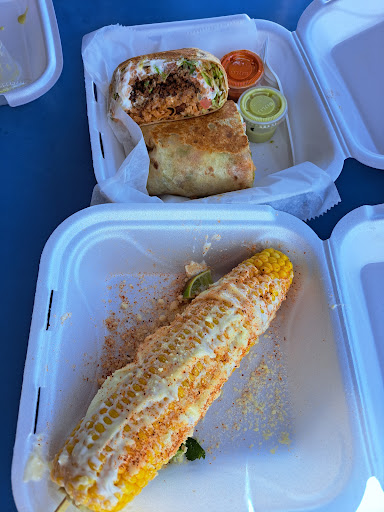 Read moreThree of us went for Friday noon lunch. The trailer is in the parking lot of a gas station\UHAUL business. The owner said to park anywhere not blocking others. We sat at an outside table under a tarp, that was expected so ok. Two of us got chorizo burritos, which were large and good. I took half home. One got a veggie taco which was just ok. Also the street corn on the Cobb was pretty good. Most customers...