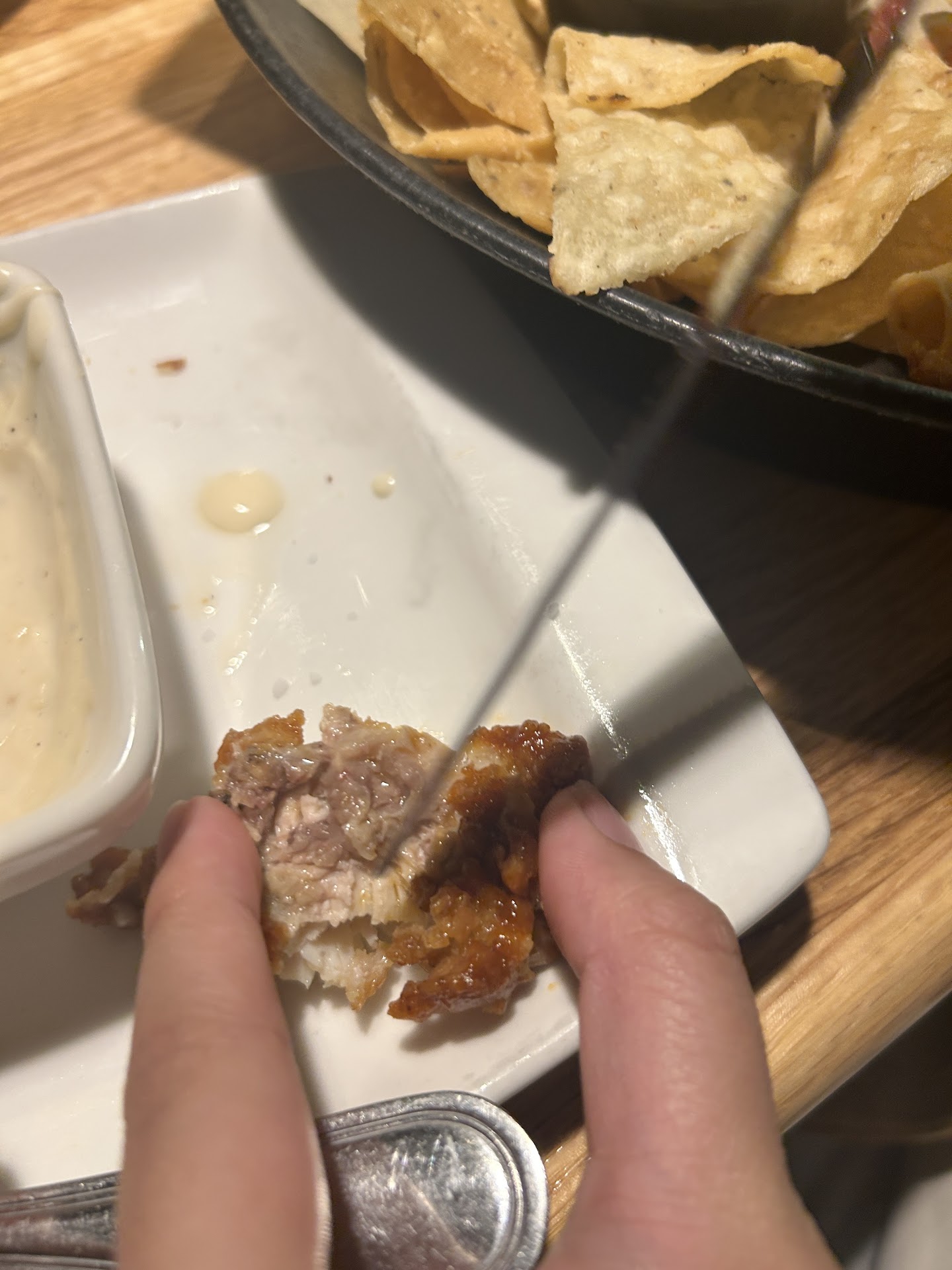 Read moreMy return to Applebees was for the purpose of treating my mother for Mother's Day. We went on Friday so we could beat the holiday rush. Upon entering, the place is so dark you can't read the menus. I had to hold up my cellphone light to the menu so my mother could read it. We were left with the impression that Applebees makes its patrons eat in the dark so they CAN'T see the subpar food they serve you! The Pina Coladas both my mother & I ordered had NO CREAM WHATSOEVER, JUST A TABLESPOON OF LIQUOR, CHEAP FLAVORING & MAJORITY CRUSHED ICE!! THE DRINKS WEREN'T OPAGUE, DUE TO THE AMOUNT OF ICE IT WAS TRANSLUSCENT & WATERED DOWN! (see pic) Beef Nachos had a teaspoon of meat throughout, this white wet liquid poured on instead of real cheese throughout! No seasoning or flavor whatsoever. The Wonton Tacos had an unidentifiable flavoring and tiny sized chicken pieces that looked and tasted artificial like chickpeas. My mother had this dish before at another location and gasped because it wasn't remotely close in flavor or looks to what she came to love! She said she was eating but couldn't identify what it was other than "CRUNCH" (see pic) I tasted it and I agree, no flavor, the plate looked like scraps! Since mom hadn't eaten all day & was famished, she ate the wontons, I tasted one. So I had no problem paying for this dish since we ate it even though it wasn't good.