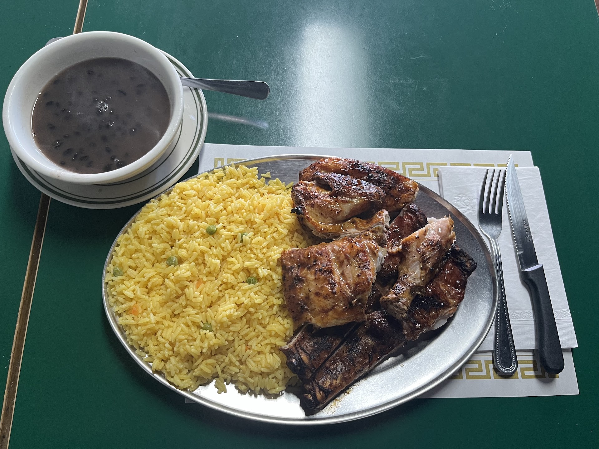 Item ordered: 1/2 bbq chicken and 1/2 ribs combos with black beans, came with rice.