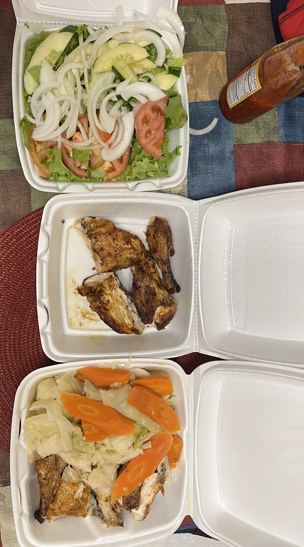 Now the areas for improvement: 1) size of the chicken was small, looked more like a Cornish hen, 2) the meat in the two pork ribs was almost non-existent, 3) the black beans had no flavor and tasted like they were simply warmed up, 4) no meat only menu options, at least I didnāt see any, and 5) the rice was just meh as it did not have any flavor really and had a few peas, very few, but this is a bbq place and not a āsidesā place. A meat only menu option like other bbq places would be a nice option.