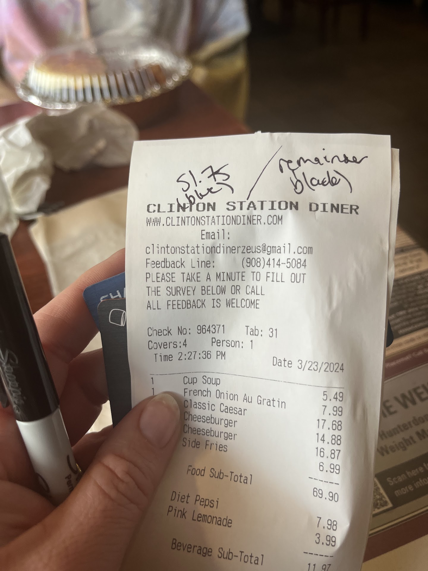 We arrived around 1:30p and just left at 3p. Not the pace typically expected at a diner. Yes, we needed some time to order, but our food took the better part of 45 min to come out. And it was just soup, salad, and burgers.