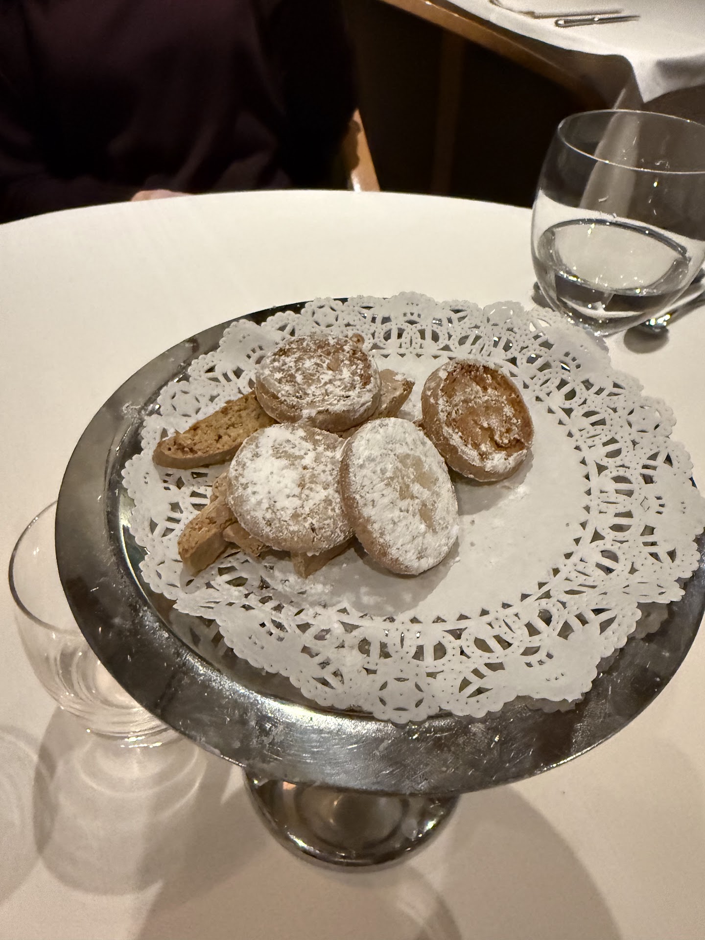 The Italian cheese cake with vanilla ice cream for dessert was amazing. The biscotti, espressos, tea, and sauterne were also great.