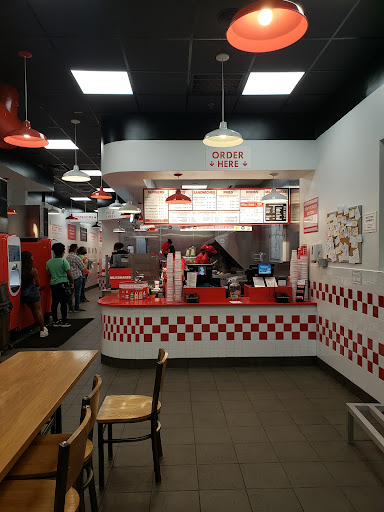 Read moreI've tried five guys before several years ago at the other location. I remember not being fond of the cheeseburger I got, and today I thought I'd give it another shot. The fries tasted like any other fries with peanut oil, the cheeseburger was rather tasteless. You can dress your own burger the way you'd dress up your sub at a sub shop. I chose to add grilled onions, lettuce and mushrooms and pickles. The wait was not long, custumer service was good, but the burger,which comes with two patties was just like I remembered from years past: Awful, tastless, greasy, so greasy, the bread was soggy. I managed to eat it all, coached myself too, being that I spent the money already. Five Guys is just not my cup of tea. Smash Burger is more stimulating to the taste buds, and even 2 dollars cheaper depending if you get the same exact thing: a cheeseburger and fries. Heck, The restaurant Fridays has declined through the years, but even their cheesburgers are better. Burger king is better than Five Guys too. If you close your eyes and eat a burger from BK, you'd think it came off the grill at a summer bar-b-q. Mcdonalds is a little bit better too, maybe on the same level...