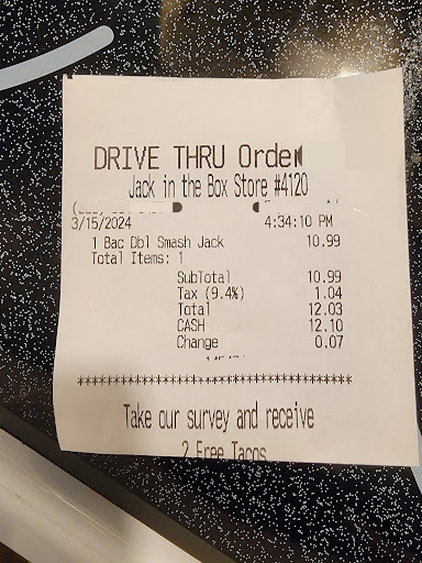 Read moreMy grandson and I decided to stop by the Jack in the box here in Union, Missouri. So we ordered our food and I told her that I had to take him to the restroom to change his pull up. So it's a one person restroom and I knocked on the door but somebody was in there and the only thing you can hear on the other side of the door was the person in their constantly lighting a lighter so then when I went into the bathroom after this person came out which was an employee. It smelled really funny in the bathroom and it wasn't cigarettes or marijuana. I just don't understand how the employee can be in the bathroom. Doing that whenever you walk in the place is disgusting. The tables are gross the floor you are sticking to and they just didn't care. When I mentioned that they were wrong for someone in the bathroom smoking, they all just kept...