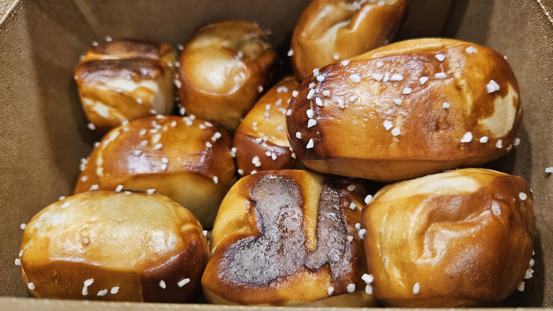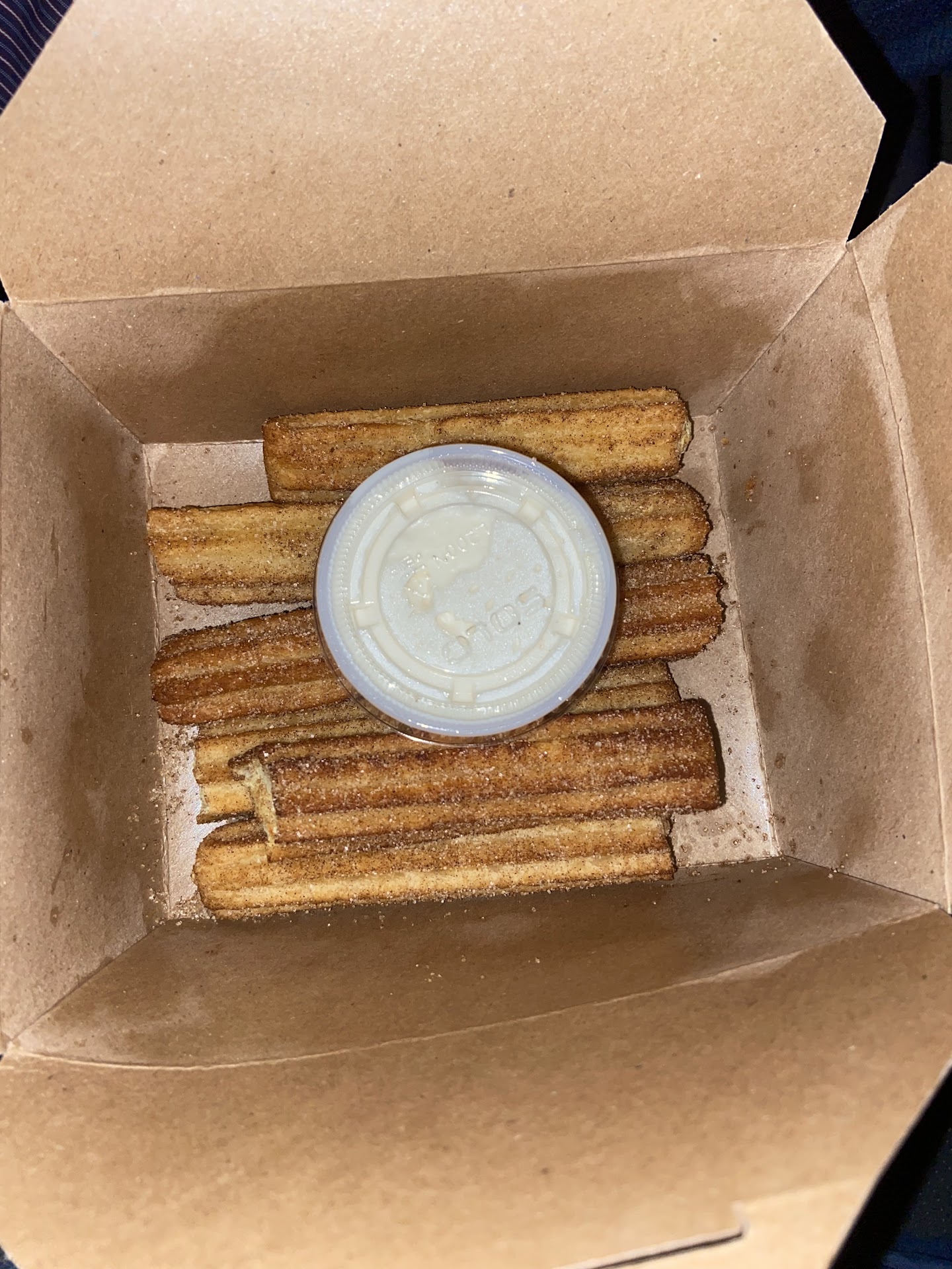 Good stoner/drunk/carb-loading food. For being the "King of Churros", their churros are actually just okay. While they come in a sharable amount and they're crispy on the outside, they're kinda dense on the inside. I've had better from my own kitchen and other places. Their pretzel game's stronger. Their Pretzel Empanadas are good and satisfying (Cheese Steak, Bacon Cheeseburger, Pulled Pork). Their Pretzel Bites are huge with a great texture and lots of sauce options (several mustards, Nutella, and more) for a small fee. With savory pretzel empanadas and good pretzels, this food is bready to be loved! ;)