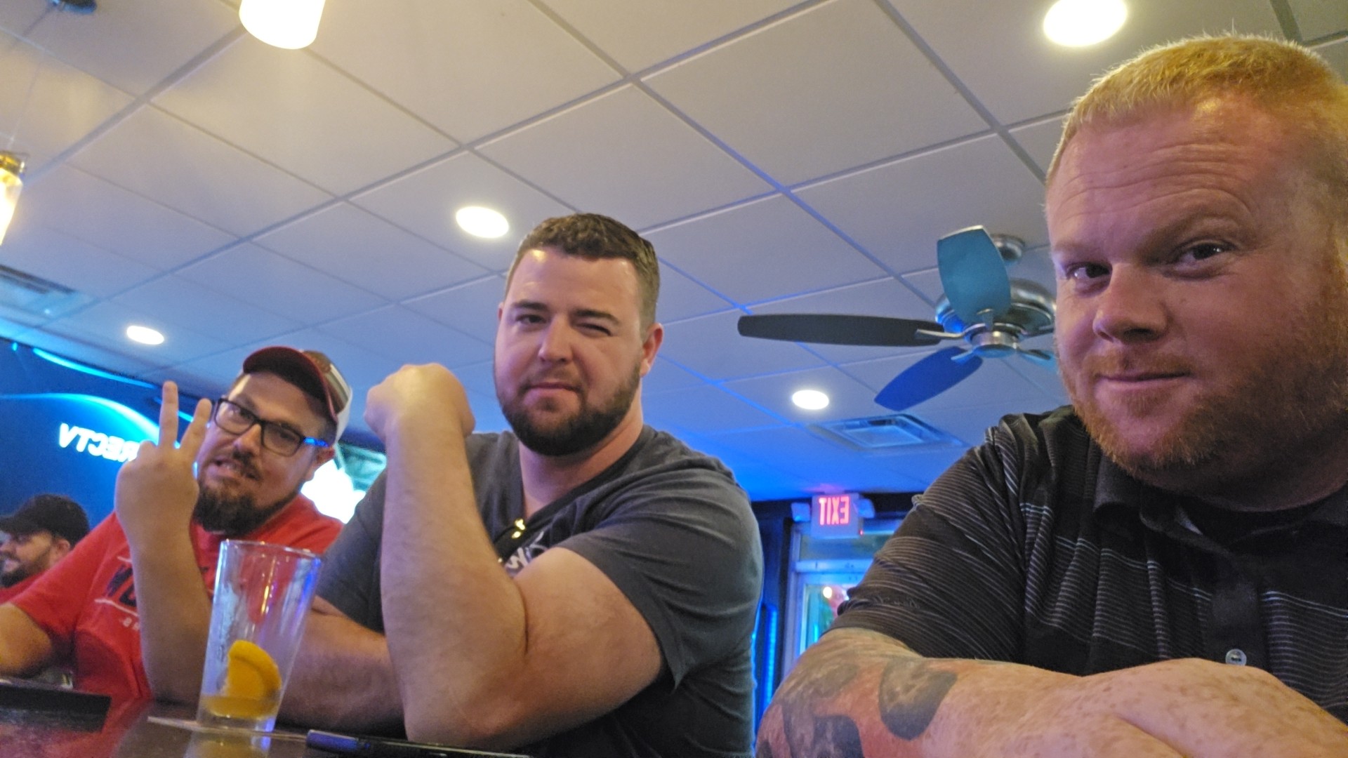 We weren’t in a hurry. Two nice servers/bartenders bounce between bar and dining room. Pleasant people but…we seemed to be forgotten about several times. Wings and pizzas were great! A lot of annoying either fruit flies or nats everywhere. We mentioned to bartender and he agreed. We’d definitely get food to go only. Place could be a gold. (I Suggest they close for two days and do an all hands on deck deep bleach cleaning, and disinfecting. Especially everything in and around the bar, soda dispensers, soda guns, beer taps, liquor area. Commercial floor...